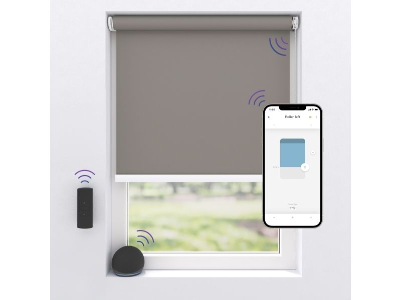 Transform your room with this stylish electric roller blind completely pre-assembled with motor, making it a seamless addition to your home. With just a gentle pull, the blinds will automatically open or close, providing you with added convenience. By adding the Motionblinds Bridge, you gain access to additional features, such as automatic closing based on sunset times, compatibility with popular smart home platforms and voice assistants, and remote operation from anywhere using the Motionblinds Bridge app. The motor featuring a USB-C rechargeable battery is discreetly hidden inside the roller blind, ensuring a clean look without visible wires. Installation is a breeze, as it requires no complicated wiring. Plus, the battery only needs to be charged twice a year which can be done whilst mounted/in operation. The width listed is the width of the roller blind excluding an additional 3 cm when mounted. The roller blind can be shortened to a minimum of 41 cm. For your convenience, the blind comes pre-assembled, making installation easy. INSTALLATION: Installing this smart roller blind is easy and no different then standard roller blinds. Simply mount the end-plug in the roller blind and mount the brackets to your wall or ceiling. Once that’s done, click the blind into the brackets, and you can set-up the motor. If you want to operate your blinds from anywhere or use smart home platforms and voice commands, you can add a Motionblinds Bridge. Smart window coverings are designed to effectively regulate natural daylight and sunlight like no other device can. By doing so, they enhance the key benefits of a smart home, including safety, energy efficiency, and convenience. With smart window coverings, you can enjoy optimal lighting while reducing energy costs and increasing your home's comfort. Electric roller blinds that can be controlled and monitored from anywhere give your home a lived-in appearance, making it look occupied even when you're away. This feature not only improves the security of your property by simulating presence but also offers peace of mind. By using preset timers or connecting your blinds to other smart home devices, you can maintain a comfortable indoor climate all year round. Your blinds will help keep your home cool in the summer by blocking out heat and warm in the winter by retaining heat. With smart blinds, you’ll enjoy added convenience and energy savings while creating a cozy atmosphere in your home! Electric roller blinds move with your daily routine, creating the perfect atmosphere at any time of day. You can easily create privacy at night with just a voice command or set them to work automatically with other smart devices in your home. Enjoy the convenience and comfort of having your blinds adjust to your lifestyle, making your living space more inviting and secure. Operate your electric roller blinds in several ways: A short pull on the chain will set the blinds in motion, Remote control – sold separately, Motionblinds Bridge-app (requires bridge – sold separately), Smart home apps like Samsung SmartThings, Amazon Alexa and Google Home (requires bridge – sold separately). The packaging includes: Electric roller blind (motor pre-assembled), brackets for wall- or ceiling mounting, installation-manual and setup guide. The curtain, mobile phone, Motionblinds remote and Alexa smart speaker are for illustrative purposes only. They are not included.