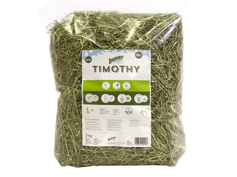 Din kanin skal spise Timothy Hø for det høje fiberindhold, som bidrager til tarmbevægelsen og med at slide deres tænder naturligt. Kaniners tænder vokser hele livet, og uden tilstrækkeligt slid kan de udvikle tandproblemer. Det høje fiberindhold kan også bidrage med at forebygge fordøjelseslidelser.