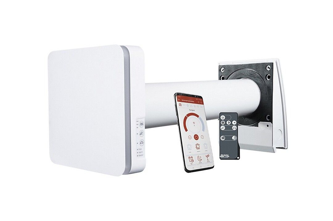 DUKA One Pro 25 S Wi-Fi er en et-rums-ventilationsløsning med varmegenvinding. DUKA One monteres i ydervæggen, og kan derfor monteres der, hvor der et ventilationsbehov i boligen.DUKA One Pro 25 S Wi-Fi har en mindre indvendig skærm, som er udført i et stilfuldt kvadratisk design med afrundede hjørner og har et mat overflade look.Alsidighed og mange installation mulighederDen indvendige skærm på DUKA One Pro 25 S Wi-Fi har to indstillinger.(1) Efficiency mode hvor der er indblæsning 360 graders rundt om den indvendige skærm.(2) Comfort mode hvor den nederste del af skærmen trykkes ind, og luften ledes opad, hvorved eventuelle trækgener kan minimeres. Det giver mange alsidige installationsmuligheder i bl.a. opholds- og soverum samt i kælder. OpbygningDUKA One Pro 25 S Wi-Fi leveres som en komplet enhed bestående af:En indvendig dual skærm med de elektroniske komponenter og betjening på siden- 500 mm rørføring- Kompakt kerne og motor blok med en længde på 165 mm- Lyddæmpende måtte- Udvendig stormskærm- Fjernbetjening- InstallationssætIndbygget Wi-Fi modulDet indbyggede Wi-Fi modul giver flere fordele som trådløs sammenkobling af flere DUKA One Wi-Fi enheder og app styring, hvor det bl.a. er muligt at:Lave et ugeprogramJustere hastighedstrinRedigerer sensorværdier