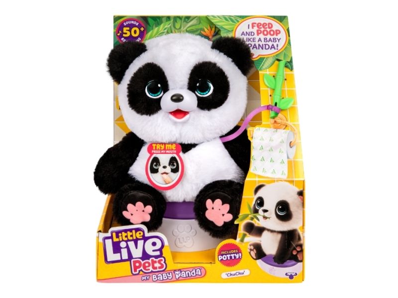 Little Live Pets Min Baby Panda! ChuChu baby pandaen er den sødeste panda, du nogensinde har set! ChuChu opfører sig og lyder præcis som en rigtig baby panda, med over 50 lyde og reaktioner.