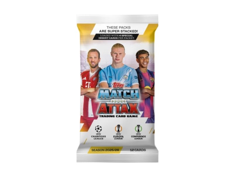 Topps UCC Match Attax samlekort for sesongen 2025/26. Topps UCC Match Attax samlekort fra Topps er den offisielle lisensen for de tre største fotballklubbturneringenei Europa: UEFA Champions League, UEFA Europa League og UEFA Conference League. I Match Attax-samlingen kan du få tak i alle de beste fotballspillerne fra Europas beste klubblag: Lamine Yamal (Barcelona), Kylian Mbappè (Real Madrid), Ousmane Dembelè (PSG). Kolleksjonenhar det velkjente basiskortsettet, skinnende folier, spesialinnsatser, kort i begrenset opplag og både nye og kjente kortdesign. Er du heldig nok til å åpne en pakke eller boks med et av de sjeldne og ettertraktede kortene fra Match Attax 2025/26?