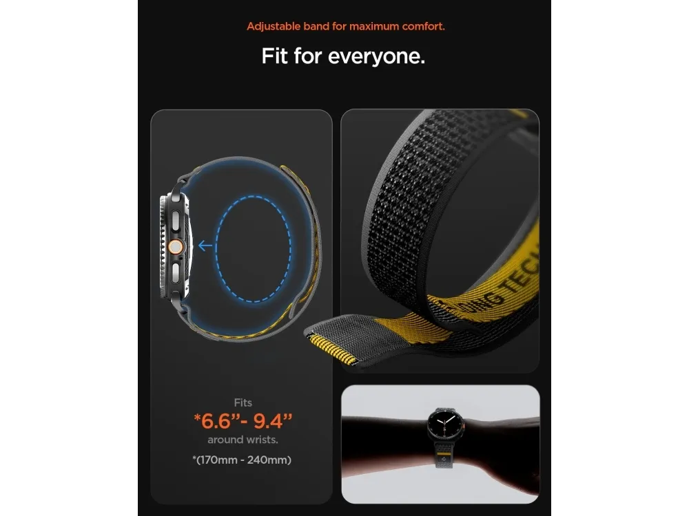 Spigen Athlex Air, Band, Smartklokke, Sort, Samsung, Galaxy Watch 8 (40/44/46 mm), Stoff