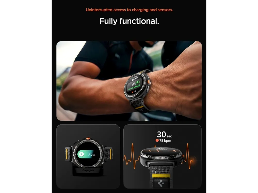 Feel the air. The Athlex Air keeps your Galaxy Watch comfortable around the clock. Its sporty and lightweight design makes your wrist feel free on the run. Adjust the fit without a slip with its signature hook and loop fastener.