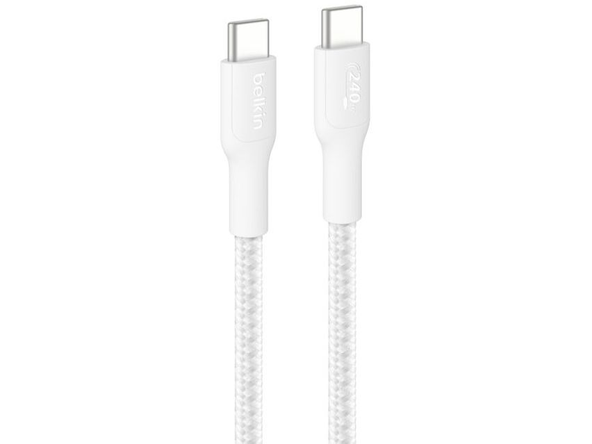 Belkin BoostCharge Eco - USB-kabel - USB-C (hann) til USB-C (hann) - USB 2.0 - DC 48 V - 5 A - 3 m - USB Power Delivery (240 W), flettet kabel - hvit