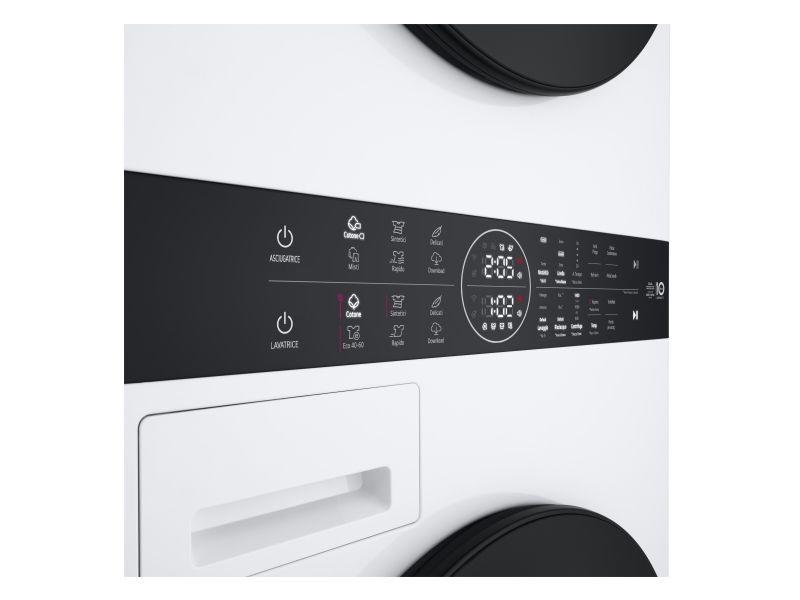 Product type- Washing machines - dryers. Brand- LG. Model- WT1210WWF . Width- 60 cm. Depth- 66 cm. Height- 165.5 cm. Colour- White. Weight- 128 kg. Energy Efficiency Class- A. Washing efficiency class- C. Washing capacity- 12 kg. Drying capacity- 10 kg. Drilling, rpm- 1350. Control- Sensoric. Washing programs- Downloaded program, Quick wash, Cotton, Anti allergy program, Mixed, Delicate program, Bed linen washing program, Wash & Dry XS Rapid. Screen- Yes. Water spill protection- Yes. Postponement of the start of the program- Yes. Child safety function- No. Mandatory warranty- 24 mo. Energy efficiency class scale- A - G.