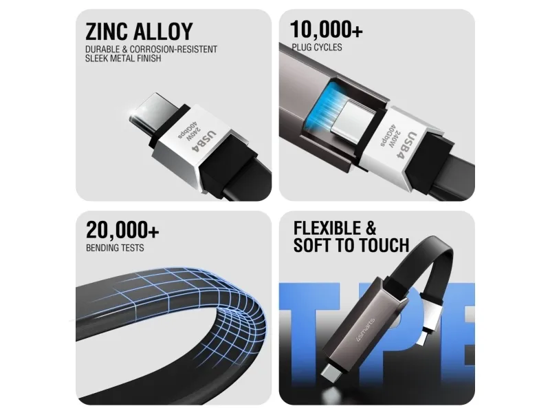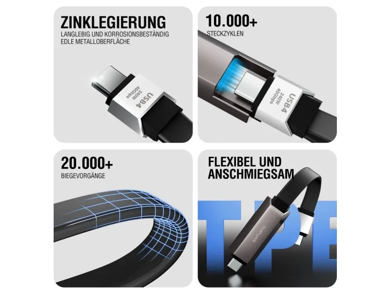4smarts 548240, 0,14 m, USB C, USB C, USB4 Gen 3x2, 40 Gbit/s, Sort, Grafitt