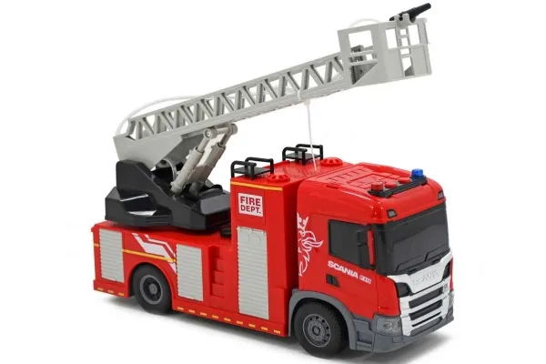 SCANIA brandbil m/stige, lys & lyd, 31x10x16,3cm