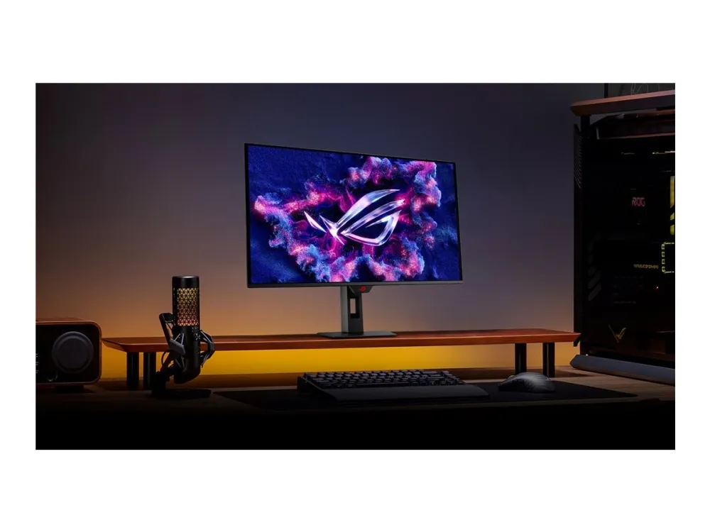 Bilde i bilde, HDCP, Trace Free Technology, ASUS GamePlus, ASUS GameVisual Technology, sideforholdskontroll, ASUS Extreme Low Motion Blur technology, Low Blue Light-teknologi, 3-sidet uten fas, Shadow Boost-teknologi, Display Widget, tripodsokkel, Delta E=2 fargenøyaktighet, Variabel oppdateringsfrekvens (VRR), OLED Care
