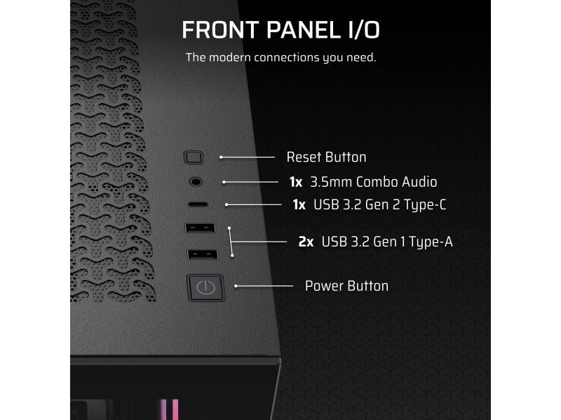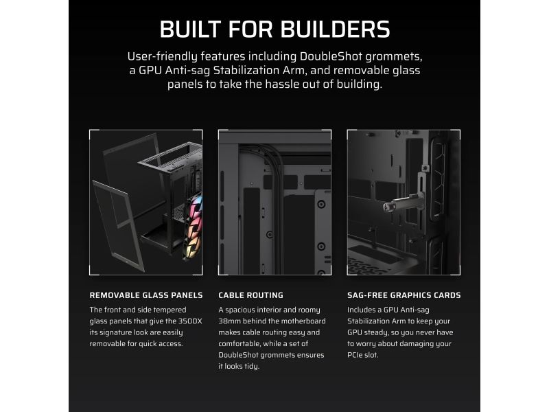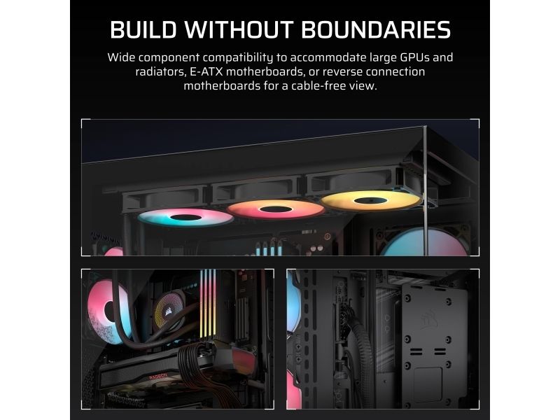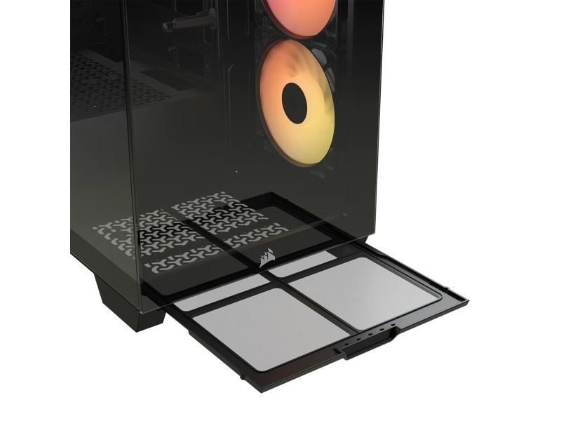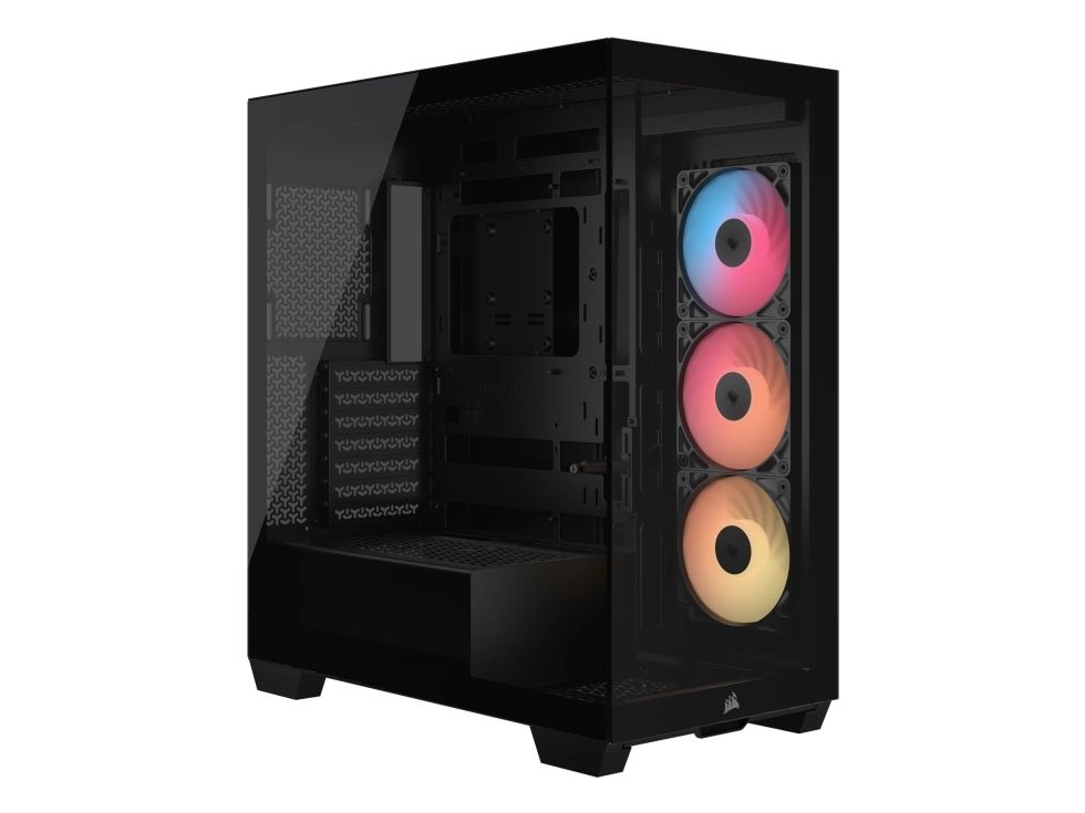 The CORSAIR 3500X RS-R ARGB chassis combines functionality with aesthetic appeal, designed to enhance your PC build. Its mid-tower form factor allows for ample space, accommodating a variety of components while maintaining an organized layout through its cable management system. Panoramic tempered-glass panels showcase the internal components beautifully and offer easy access for upgrades and maintenance. The chassis features multiple dust filters to protect against debris and supports ARGB fans for customizable lighting that adds a unique touch to any setup. Cooling options are ample, with flexibility for various fan and radiator configurations, ensuring optimal airflow and temperature management for high-performance builds. The robust structure of this case, made from steel and tempered-glass, provides durability while the sleek design appeals to gamers and PC enthusiasts alike. With generous space for expansion and compatibility with various motherboard types, the CORSAIR 3500X RS-R ARGB is a smart choice for builders seeking style and efficiency.