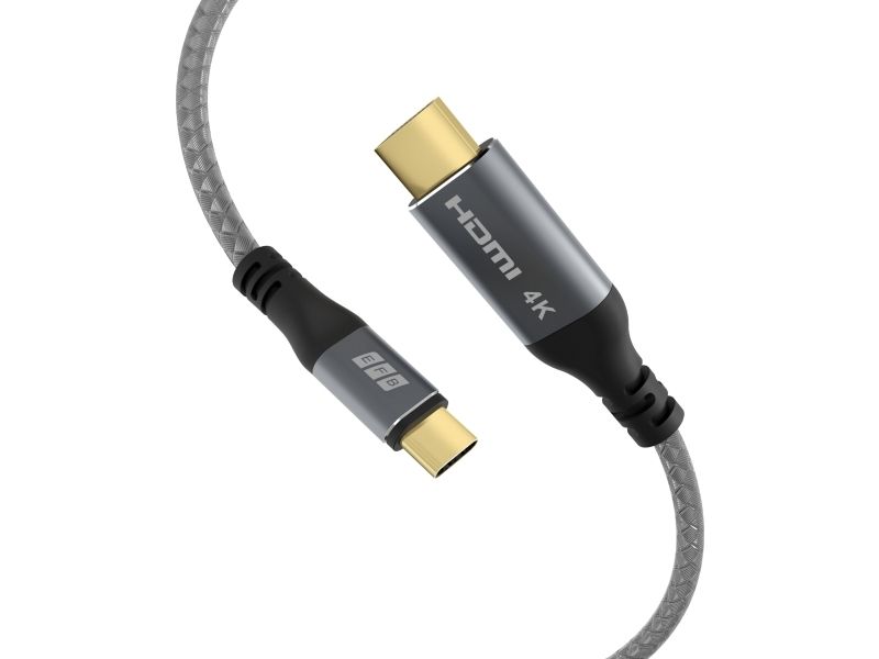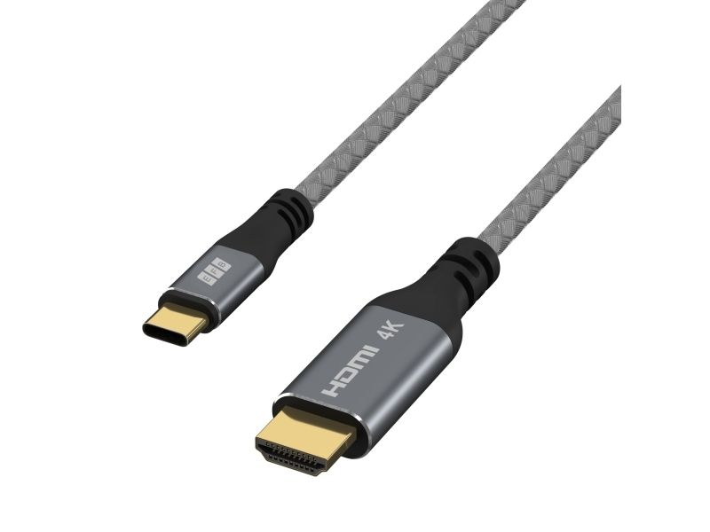 This USB-C to HDMI cable delivers clean, stable 4K@30Hz video output from modern devices to HDMI displays. Designed for professionals, it features a space-grey braided jacket, gold-plated connectors in an aluminum housing, and fully plastic-free packaging. Ideal for IT integrators, conference environments, and digital signage projects.EFB Elektronik USB-HDMI-00001. Cable length: 1.8 m, Connector 1: USB Type-C, Connector 2: HDMI. Connector 1 dimensions (WxDxH): 35 x 12.3 x 8.2 mm, Connector 2 dimensions (WxDxH): 58 x 19.8 x 10.6 mm. Quantity per pack: 1 pc(s)