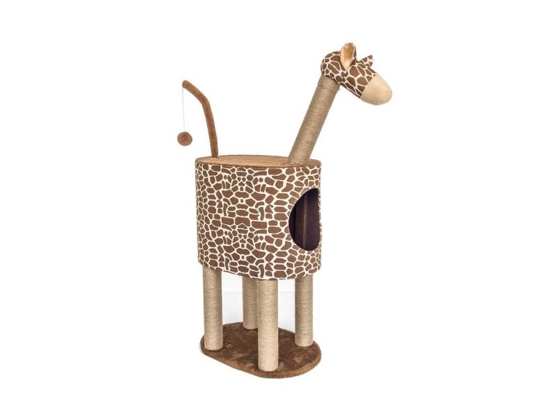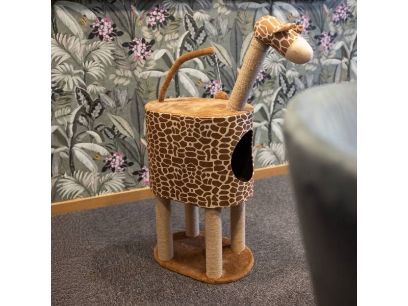 Cleo - för en safariupplevelse, fast hemma! Cleo är klösmöbeln för alla katter som drömmer om att vara kung på savannen och att få ha en alldeles egen giraff! Självklart kan din katt också klösa, klättra, vila och leka i detta roliga klösträd med sovplats. Med flera klöspelare och mjuk och inbjudande koja kan din lilla jägare både hålla sig sysselsatt och spana ut över savannen samtidigt. Mått: 40 x 26 x 84 cm. Sisalstolparnas diameter är 5,5 cm.