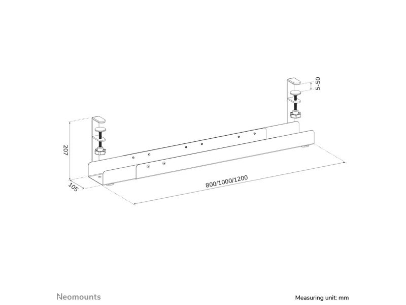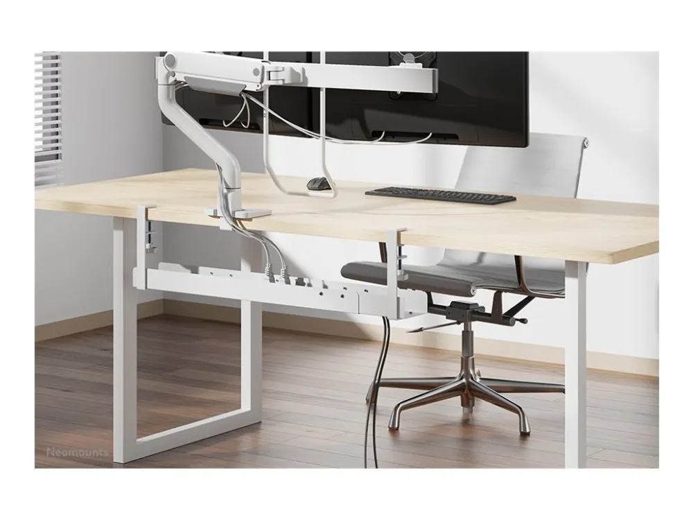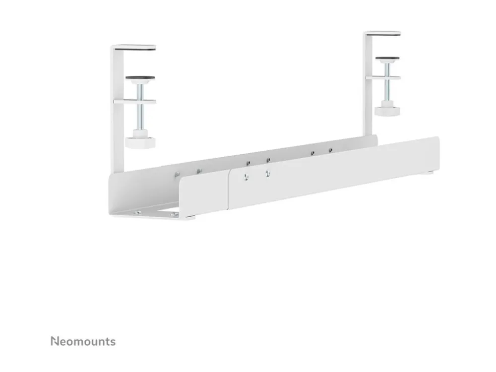 The Neomounts cable management tray is designed for efficient organization, making it a practical addition to any workspace. With a clamp-on design, this desk mountable tray offers a universal fit, ensuring versatility and ease of use. Constructed from durable steel, the tray is built to withstand a maximum load weight of 5 kg, providing reliable support for various cables and accessories. The tool-free assembly allows for a quick installation, making it easy to maintain a tidy desk area.