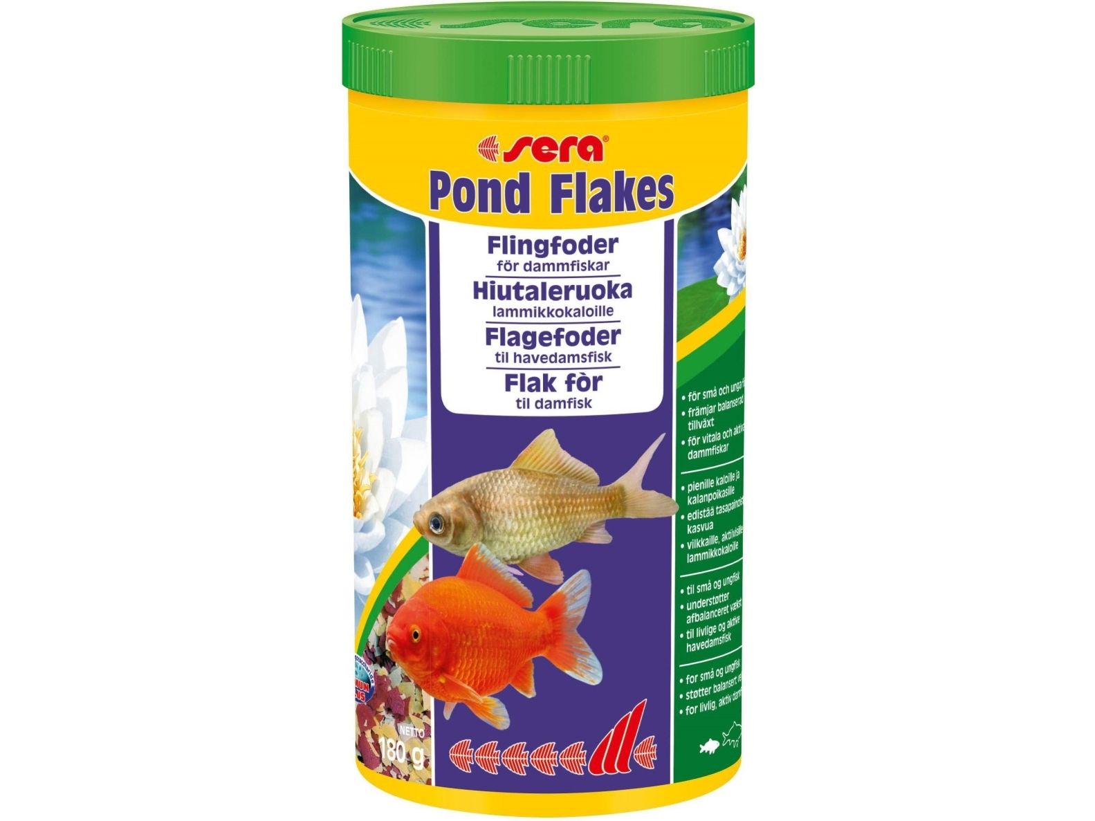 Sera Pond Flakes Nature är ett balanserat foder för dammfiskar som guldfiskar, bitterlingar och ungfiskar. De skonsamt producerade flingorna är rika på vitaminer och mineraler och har ett balanserat förhållande mellan kolhydrater och proteiner. Det är lättsmält och kan stödja normal tillväxt och stärka kroppens försvar.