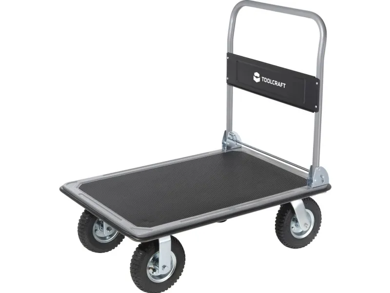 Platformsvogn 300 kg All-Terrain Nem anvendelse Låsehåndtag til at klappe 90° Denne sammenklappelige platformvogn fra TOOLCRAFT er den ideelle løsning til transport af tungt og pladskrævende gods på lager, i værksteder og i drift. Den kombinerer en robust konstruktion med praktisk funktionalitet og letter dermed de daglige arbejdsgange.