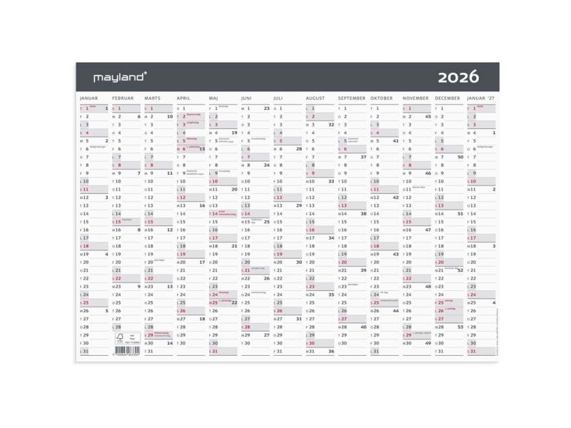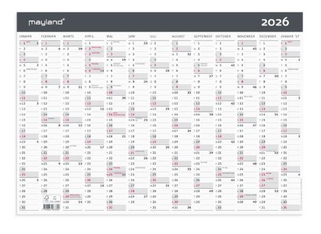 Kontorkalender i karton og moderne design med 13 månedsoversigt. Vægkalenderen giver dig en oversigt over alle 12 måneder i året samt for januar det efterfølgende år. Med årskalenderen kan du hurtigt og nemt skabe et godt og overskueligt overblik over året og alle dets aktiviteter.