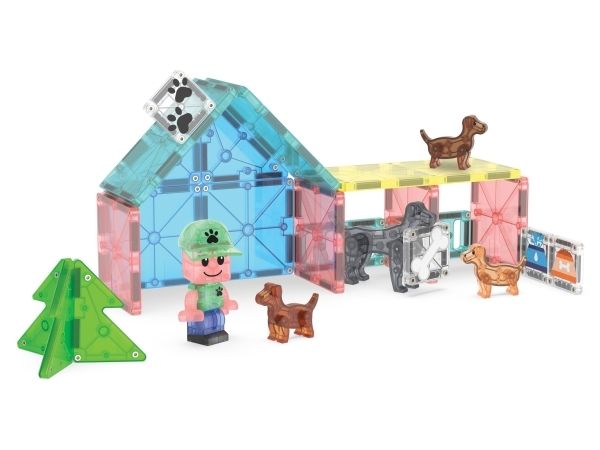 Lav din egen Hundedagpleje med det magnetiske bygge- og legesæt fra MAGNA-TILES. Inkl. hundefigurer, hundepasserfigur og hundeboxe. 27 dele. Fra 3+ år