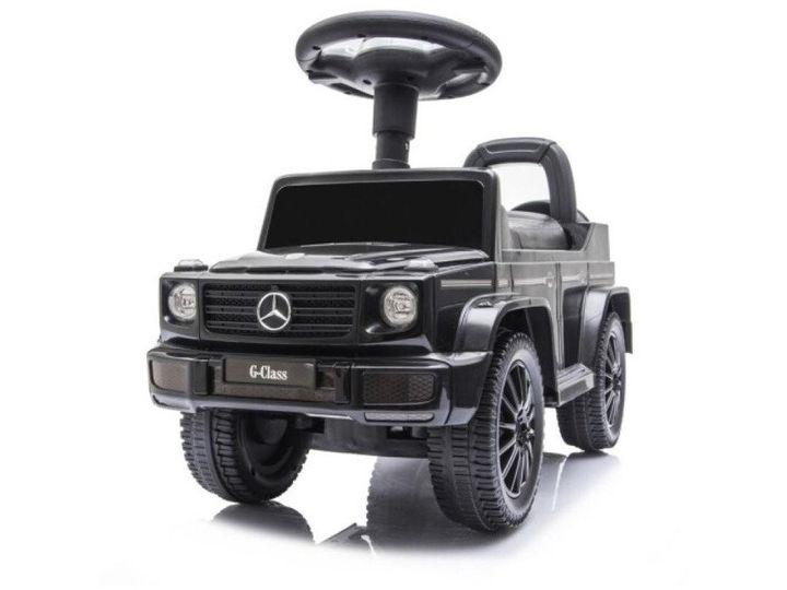 Flot gåbil på licens fra Mercedes-Benz. Modellen G350D fra NORDIC PLAY leveres i en stilfuld sort farve med realistisk design. Der er horn og motorlyde indbygget i rattet. Med aftagelig ryglæn og reservehjul til pynt. Der er desuden opbevaringsrum til legetøj. Kan både bruges ude og inde. Rattet bruger 2xAA batterier. Medfølger ikke.