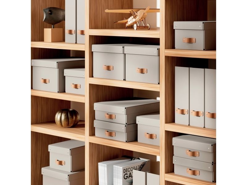 - Passer perfekt i kubusmøbler og på reoler eller kan bruges som pladsbesparende opbevaring på skriveborde og arbejdsstationer