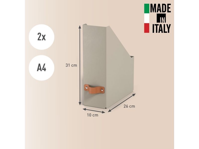 - Stilfuldt håndtag i læder gør tidsskriftsamlerne nemme at få ud af hylder, opbevaringsenheder og skabe