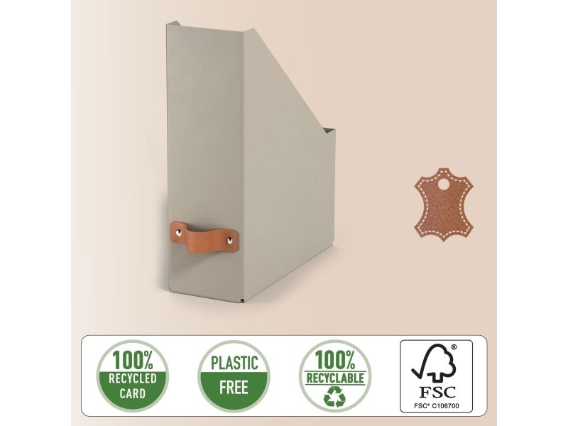 Hold orden og føl dig godt tilpas ved at bruge Leitz Puro tidsskriftsamler af karton til at skabe øjeblikkelig opbevaring og rydde op i dine værelser. Dette sæt med to dekorative tidsskriftsamlere er fremstillet af 100 % recirkuleret karton og hjælper med at holde orden i hjemmet og på kontoret, samtidig med at det giver stil til din opbevaring. Opbevar alt fra A4-dokumenter, bøger og magasiner til hobby- og håndarbejdsartikler, så de er beskyttede og nemme at komme til, når du har brug for dem. Leitz tidsskriftsamlere leveres fladt pakket og er hurtige og nemme at samle uden brug af værktøj. Disse tidsskriftholder er lavet af 100 % recirkuleret FSC-certificeret pap og kan skilles ad, så de kan recirkuleres 100 % efter brug. Udvalget af jordfarver - inspireret af naturens renhed og enkelhed - vil passe perfekt til dit interiør og give en følelse af ro i dine rum og kontorer. Hver tidsskriftholder har et håndtag i læder, som gør dem nemme at tage ned fra hylder og opbevaringsenheder. Fremstillet i Italien af karton i høj kvalitet for at sikre, at tidsskriftsamlerne forbliver oprejste, selv når de er fyldte. Disse Leitz-tidsskriftholdere er den perfekte tilføjelse til dit hjem og kontor for at skabe tiltalende og produktive rum. Føl dig godt tilpas med Leitz.