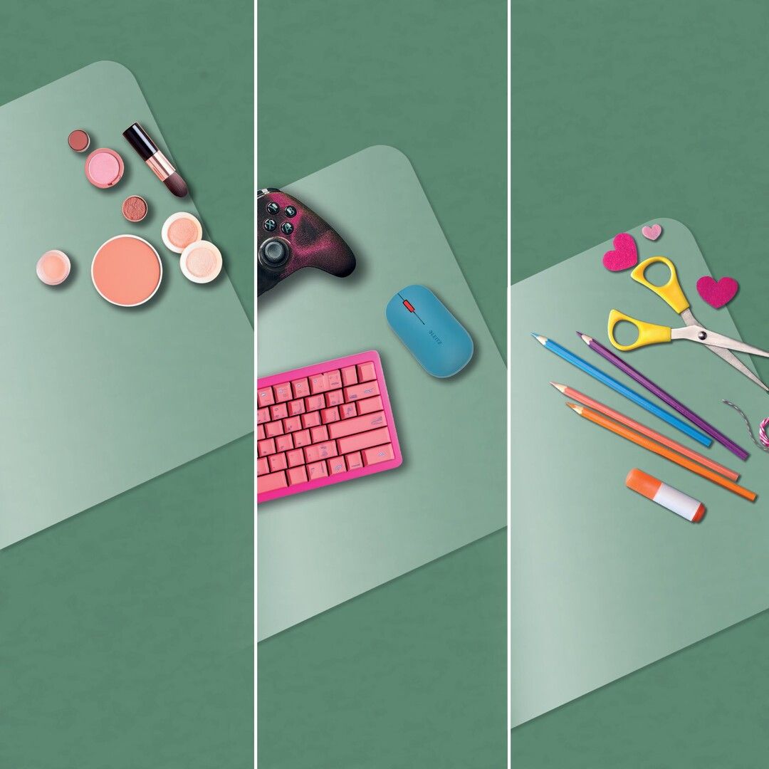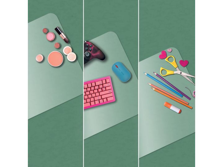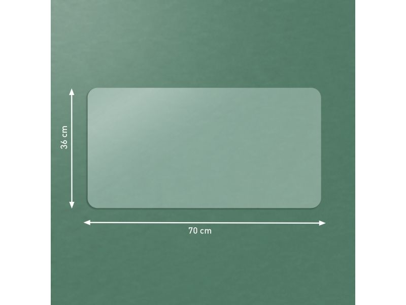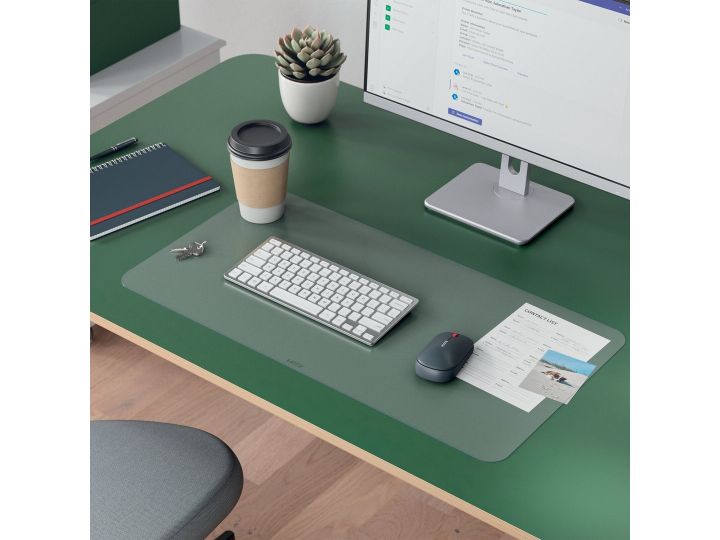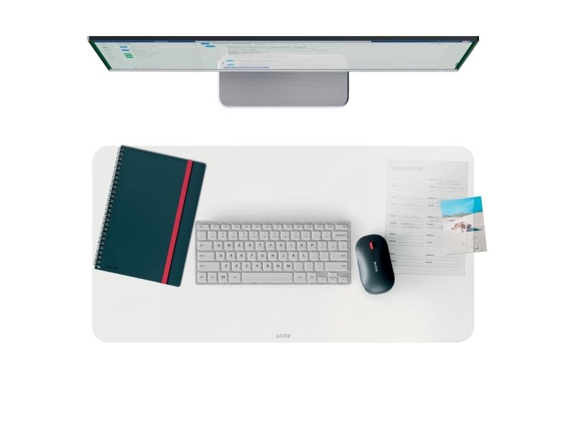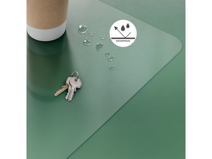 Multifunktionel, da den generøse bredde giver plads til tastatur, mus, notesblok og tilbehør. Med afrundede hjørner og fremstillet af skridsikkert materiale er den nem at rengøre og vandtæt. Desuden giver den matte, gennemsigtige finish mulighed for at placere ekstra ting som kalendere eller fotos nedenunder, så man nemt kan finde dem.