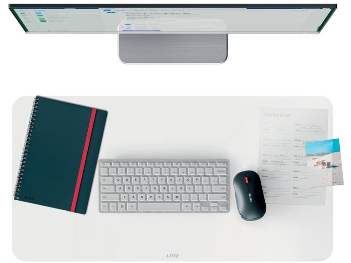 Den passer perfekt til ethvert almindeligt skrivebord og til Leitz Ergo kompakte skriveborde. HAV DET GODT med Leitz. - Elegant og diskret transparent skriveunderlag, der holder dit skrivebord rent og pænt - Stor overflade på 70 x 36 cm med plads til tastatur, mus, notesblok og tilbehør - Let at rengøre og vandtæt - Slidstærkt materiale beskytter dit skrivebord mod ridser, skrammer og spild - Skridsikker med afrundede hjørner - Mat gennemsigtigt design, så man kan se dokumenter nedenunder, f.eks. fotos, kalendere osv. - Passer perfekt til ethvert skrivebord i standardstørrelse og Leitz Ergo kompakte skriveborde - HAV DET GODT med Leitz til arbejdet og livet