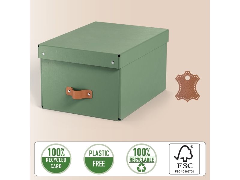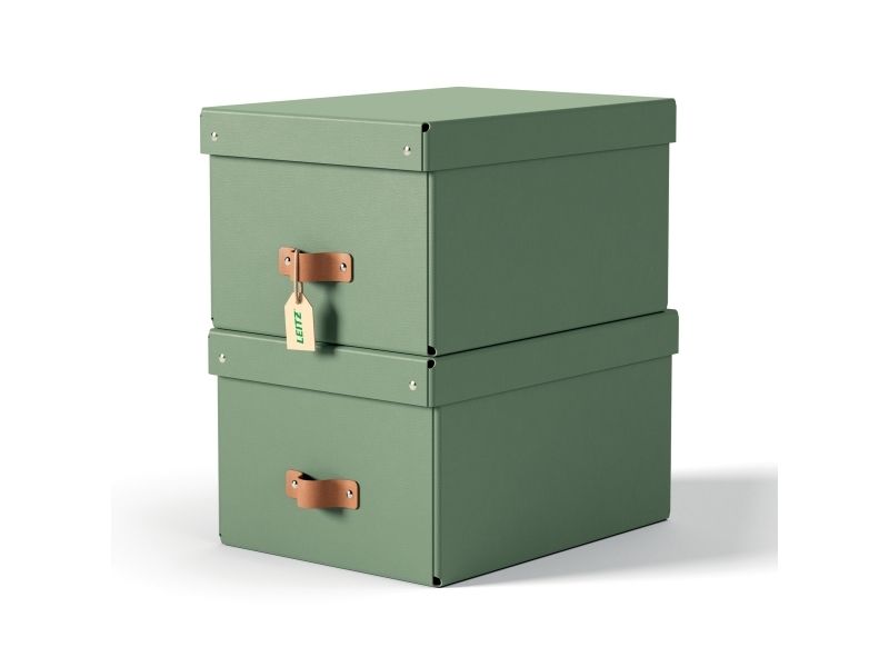 Leitz Puro oppbevaringsboks med lokk, medium, 17L, 100 % resirkulert kartong, pakke med 2, Grønn, Kartong, 17 l, 270 mm, 370 mm, 200 mm