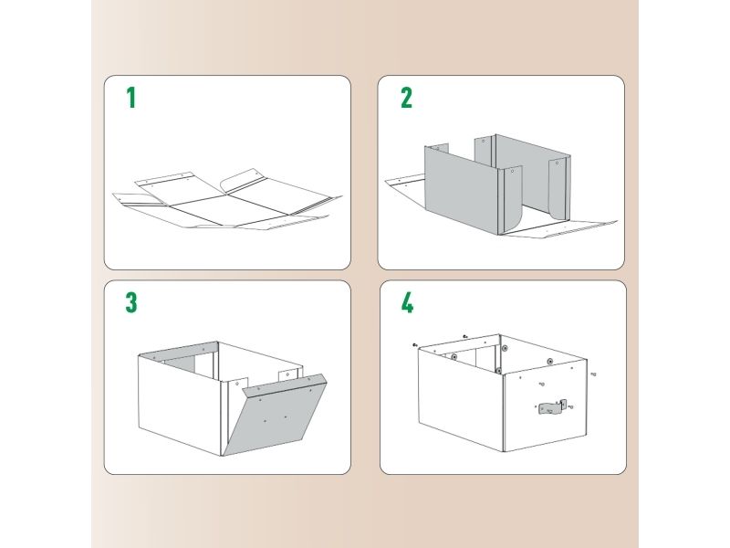 - Leveres fladpakket i plastfri emballage, nem at samle uden brug af værktøj
