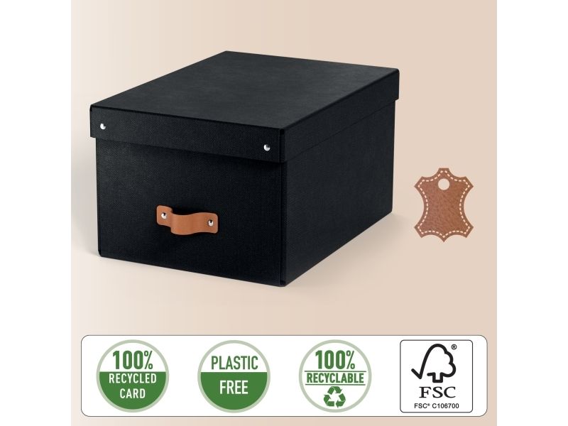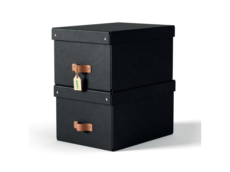 Leitz Puro oppbevaringsboks med lokk, medium, 17L, 100 % resirkulert kartong, pakke med 2, Sort, Kartong, 17 l, 270 mm, 370 mm, 200 mm
