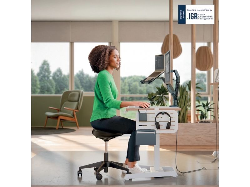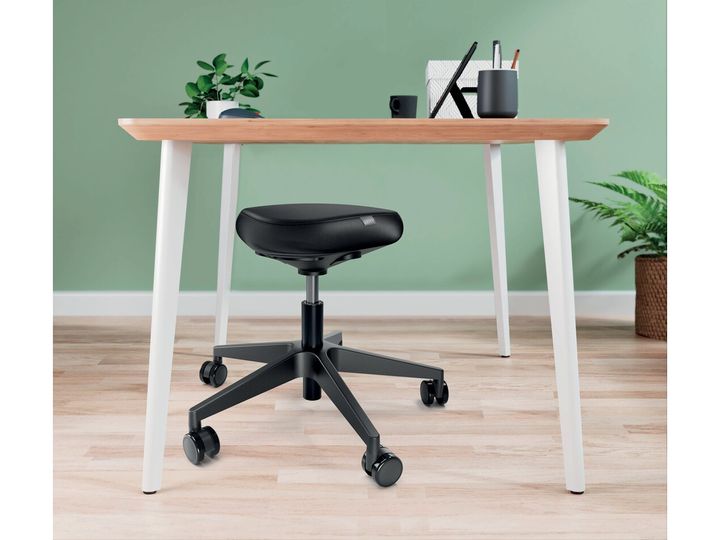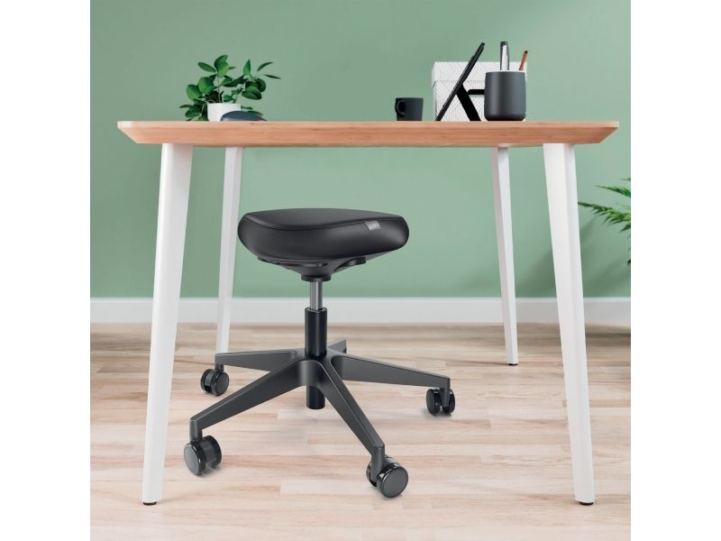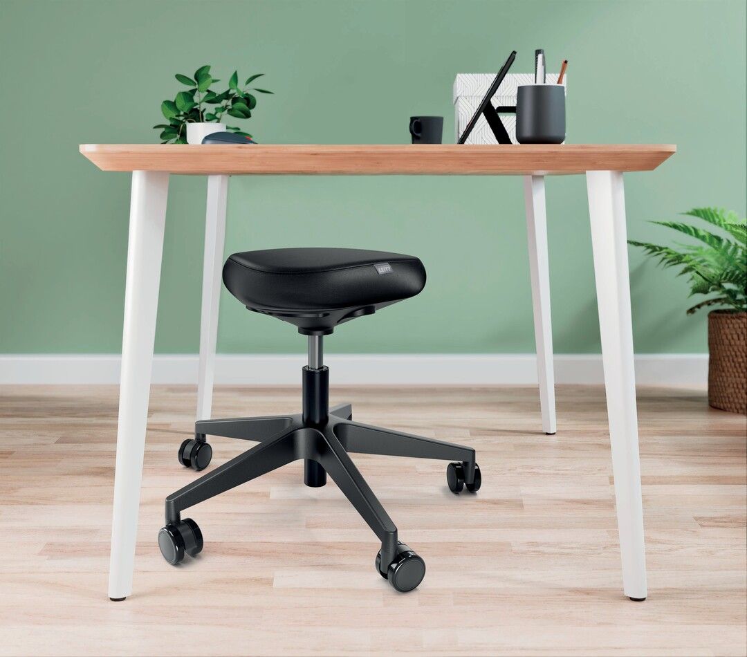 Denne moderne designede taburet med hjul er ideel til at øge komforten og maksimere produktiviteten og passer perfekt ind i mange miljøer. Vores mission er at levere løsninger, der gør det muligt for den enkelte at trives på og uden for arbejdet, og som fremmer positiv mental sundhed og fysisk velbefindende. Kombiner med andre Leitz Ergo-produkter for at tilpasse din fleksible og individuelle sid, stå & bevæg dig-arbejdsstation. Hold dig aktiv, føl dig inspireret, og nyd komforten på arbejdet og i andre sammenhænge - hvor menneskecentreret design møder førsteklasses kvalitet og præcis tysk teknik. HAV DET GODT med Leitz. - Stilfuld og ergonomisk stol på hjul for at holde dig mobil og komfortabel. Bredere 60 cm base for at forhindre, at stolen vælter, tysk TÜV og GS (sikkerhedstestet) - Trekantet, unikt komfortsæde i Dual Density Foam (DDF) med fast, ergonomisk støttekerne, der fordeler vægten jævnt over bækkenet, omgivet af blød skumpolstring, der reducerer trykket på lår og ben som på en sadelstol - Det 9 cm tykke, stabile sæde opmuntrer til en sund kropsholdning under arbejdet, kan reducere gener og forbedre velbefindende og giver en ultrakomfortabel siddeoplevelse, der minder om en siddepude - Testet og anbefalet af det tyske IGR-institut for sundhed og ergonomi i henhold til DIN 26800 EN ISO 15537 - Let og mobil med 5 x 360° letrullende hjul, der øger sikkerheden ved at øge modstanden, når stolen ikke er i brug, og forhindrer utilsigtet bevægelse, velegnet til alle gulvtyper på kontoret og i hjemmet - Jævn pneumatisk højdejustering fra 46 - 59 cm ved hjælp af en af de 3 trykknapper under sædet, der giver nem adgang, uanset hvordan du sidder på stolen - Kompakt design til opbevaring under et skrivebord med en maksimal belastning på 110 kg - Let at rengøre sæde i kunstlæder med overflade der kan tørres af. Ideelt til travle miljøer, hvor renhed er afgørende. - Let at samle i få trin uden brug af værktøj. Kompakt og fuld recirkulerbart emballage - Denne Leitz Active stol med hjul er udviklet i Tyskland og fortsætter Leitz' arv af førsteklasses kvalitet og design - Skab dig et individuelt, behageligt og sundt arbejdsmiljø for at HAVE DET GODT med Leitz Ergo