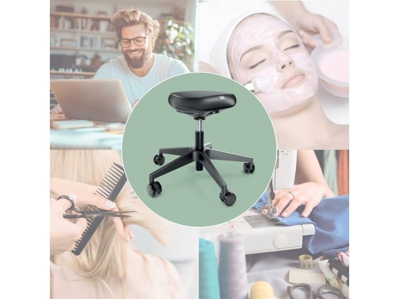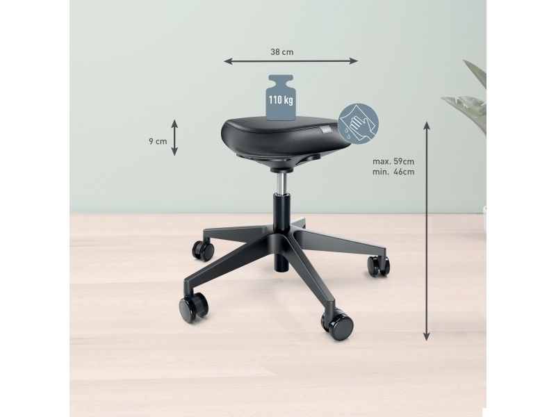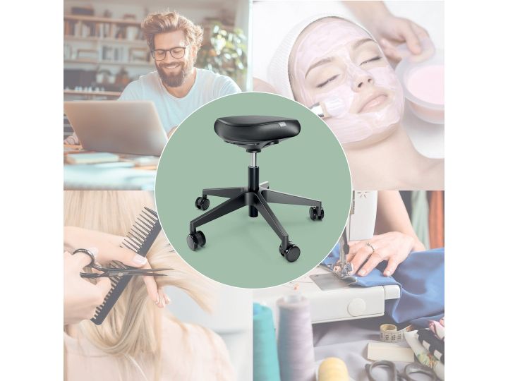 Det ergonomiske sæde får dig til at sidde mere oprejst og hjælper med at forbedre kropsholdningen og reducere gener. Denne ergonomiske arbejdsstol med justerbar højde er testet og certificeret af Institute for Health and Ergonomics (IGR) og er skabt til at holde dig komfortabel, uanset om du er hjemme, på kontoret, i frisørsalonen, på værkstedet eller i studiet. Let at rengøre sæde i kunstlæder med overflade der kan tørres af. Ideelt til travle miljøer, hvor renhed er afgørende.