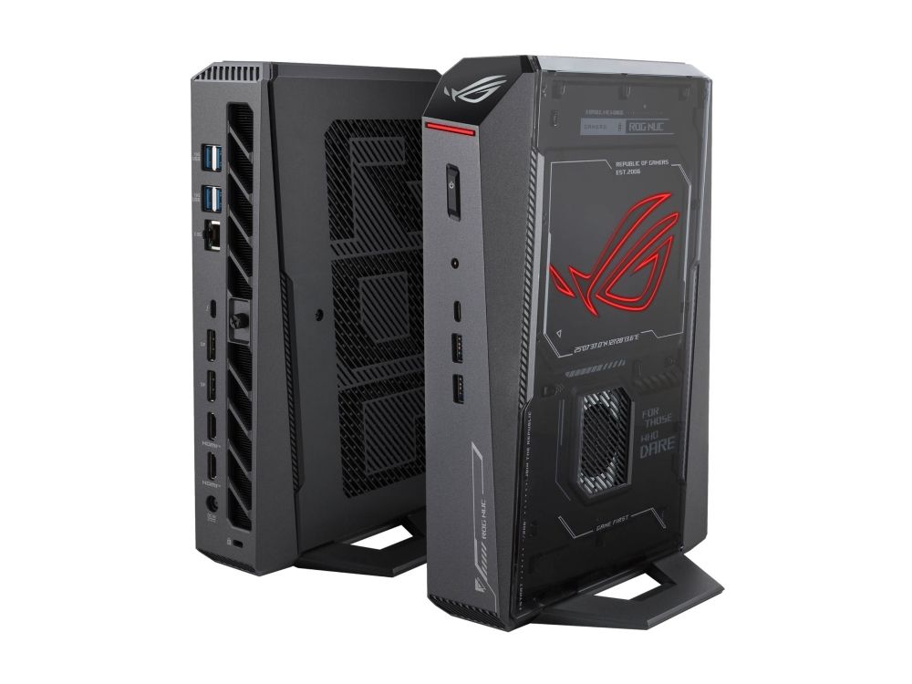 The ASUS ROG NUC is an ultra-compact mini PC designed for high performance in gaming and demanding applications. Equipped with a powerful Intel Core Ultra 7 processor and NVIDIA GeForce RTX 5060 graphics, it delivers exceptional speed and graphics quality. With 16 GB DDR5 RAM and a 1 TB NVMe SSD, users can expect rapid load times and ample storage for games and software. The built-in RGB lighting adds a custom touch, enhancing the aesthetics for any setup. Connectivity includes multiple interfaces, such as HDMI, Thunderbolt 4, and USB 3.2 Gen 2, ensuring seamless integration with peripherals. The networking capabilities support Wi-Fi 7 and Bluetooth 5.4, providing fast and reliable wireless connections. Whether for gaming or creative work, the ASUS ROG NUC offers the performance and versatility needed for an immersive experience.
