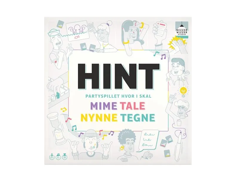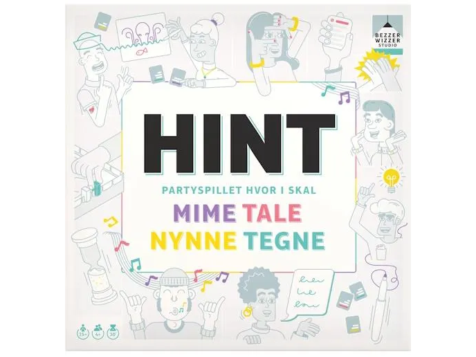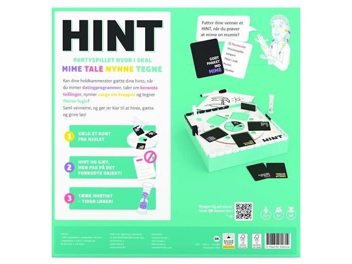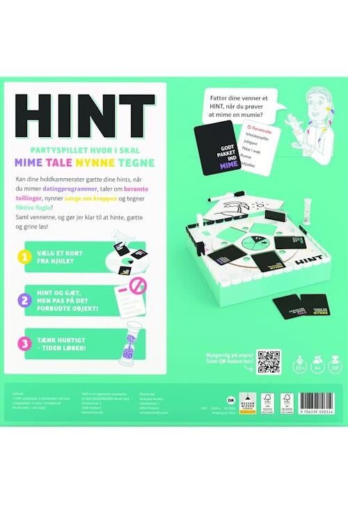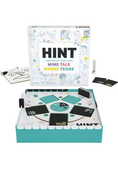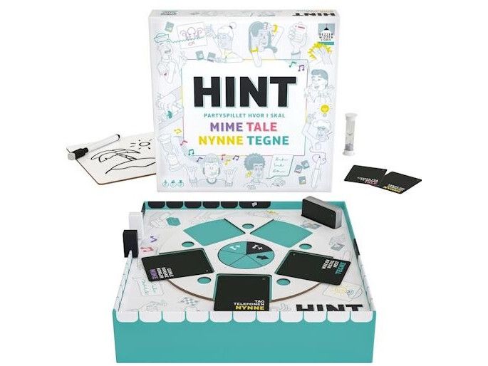 Drej hjulet og vælg et HINT-kort i en af de fire kategorier: MIME, TALE, NYNNE eller TEGNE.
