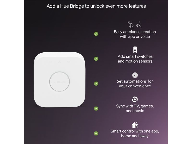 Philips Hue White and Color Ambiance Essential-lyspæren tilbyr allsidighet og lysstyrke for alle omgivelser. Den har et bredt fargetemperaturområde fra 2200 K til 6500 K, slik at brukerne kan tilpasse belysningen etter humør eller aktiviteter. Med en fargegjengivelsesindeks på 80 gir denne pæren levende farger som forbedrer rommenes visuelle utseende. Kompatibilitet med smarte hjemmesystemer som Google Assistant, Alexa og Apple HomeKit muliggjør sømløs integrering og stemmestyring, noe som gir bekvemmelighet og brukervennlighet. Pæren er designet for å fungere effektivt i et bredt temperaturområde fra -20 °C til 45 °C, noe som sikrer pålitelig ytelse. Den dimbare funksjonen gjør det mulig å finjustere lysstyrken, noe som gjør den ideell for å skape den perfekte stemningen til enhver tid.