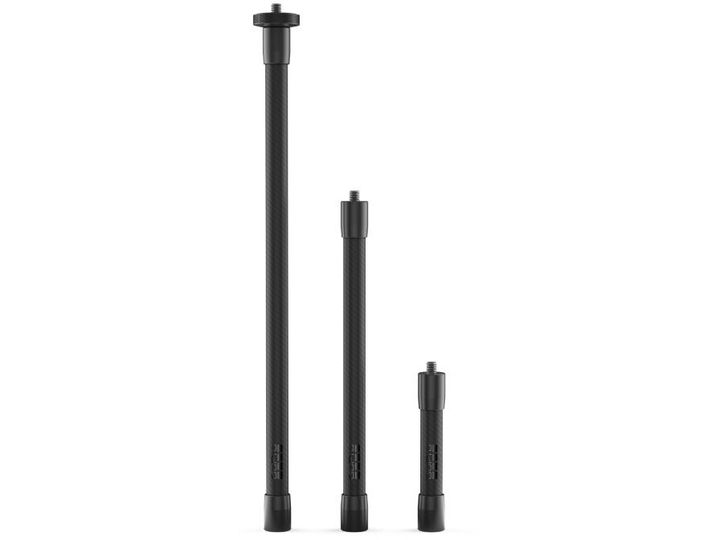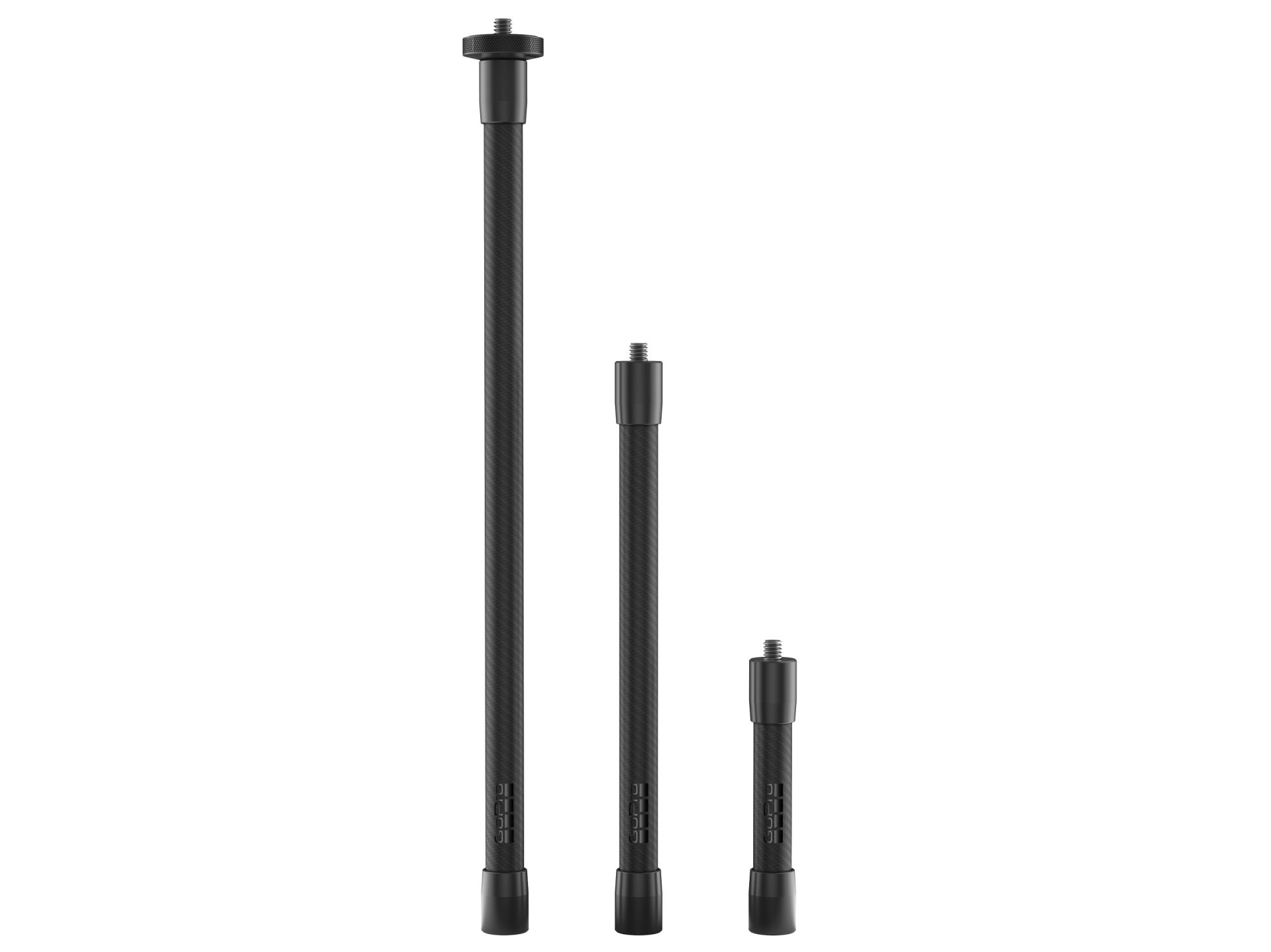 Med dette sæt af 3 stabile, lette forlængerstænger af kulfiber kan du nemt ombygges din aktuelle holder til en imponerende, usynlig 360°-optagelser. Stængerne kan fastgøres på hver 1/4-20-holder for at øge længden efter behov og kan kombineres med hinanden. Brug den til at forlænge dit kamera ud over den minimumsafstand, der kræves til sammenstilling af 360°-optagelser, eller til at optage enestående synsvinkler såsom front-to-back-perspektiv fra styrholderen. Stængerne er 10 cm, 20 cm og 30 cm lange. Indeholder en kameraplatform, der kan udskiftes fra en forlænger til en anden, med en gummibasis, der holder dit kamera fast på sin plads under optagelsen.