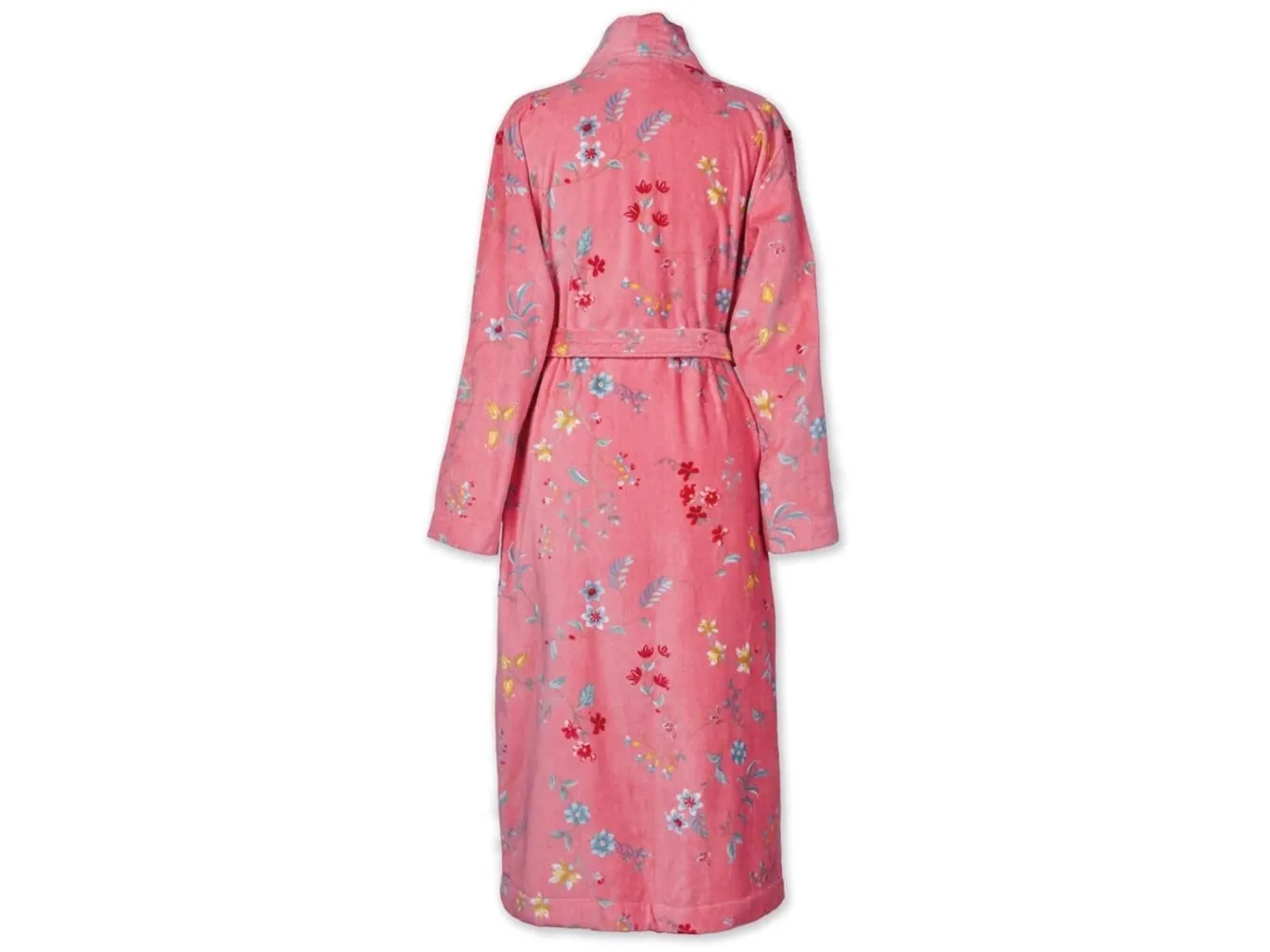 PIP Les Fleurs Bathrobe Pink S er en lækker bathrobe fra det anerkendte mærke PIP Studio. Den er lavet af et kvalitetsmateriale bestående af 100% bomulds frotte. Den har en smuk pink farve og en størrelse S. Til den smukke bathrobe hører også et lækkert 100% bomulds velour frotte, som gør den endnu mere lækker at bære. Den er vaskbar ved 30°C og kan derfor vaskes sammen med de andre tøjvask.