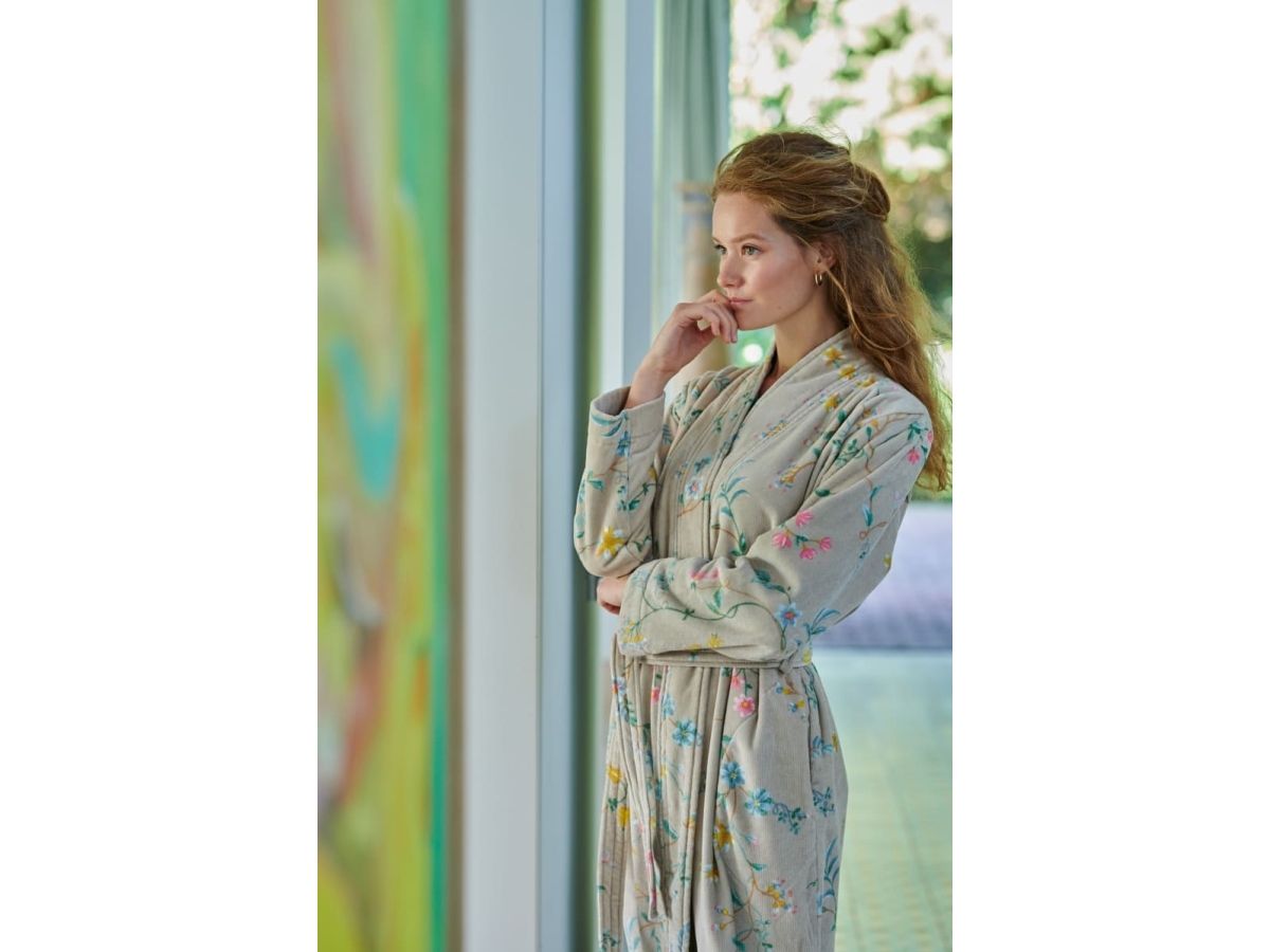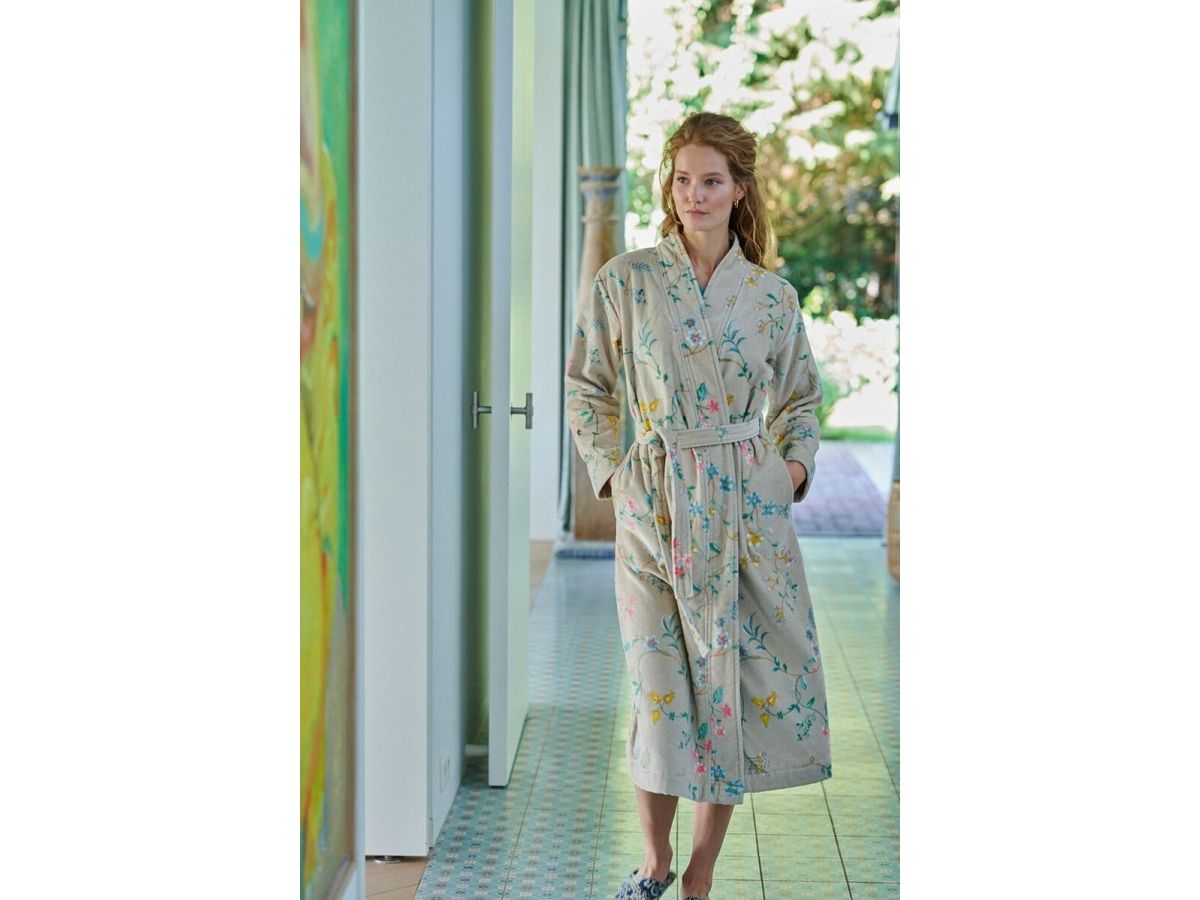 PIP Les Fleurs badekåbe Khaki S er lavet af 100% bomulds frotte, og er designet af det populære mærke PIP Studio. Den kommer i farven khaki, og er den perfekte badekåbe at have på efter et godt bad. Den er lavet af 100% bomulds velour frotte, og kan vaskes ved 30°C. Køb denne PIP Les Fleurs badekåbe Khaki S for at føle dig afslappet og behagelig i din hverdag.
