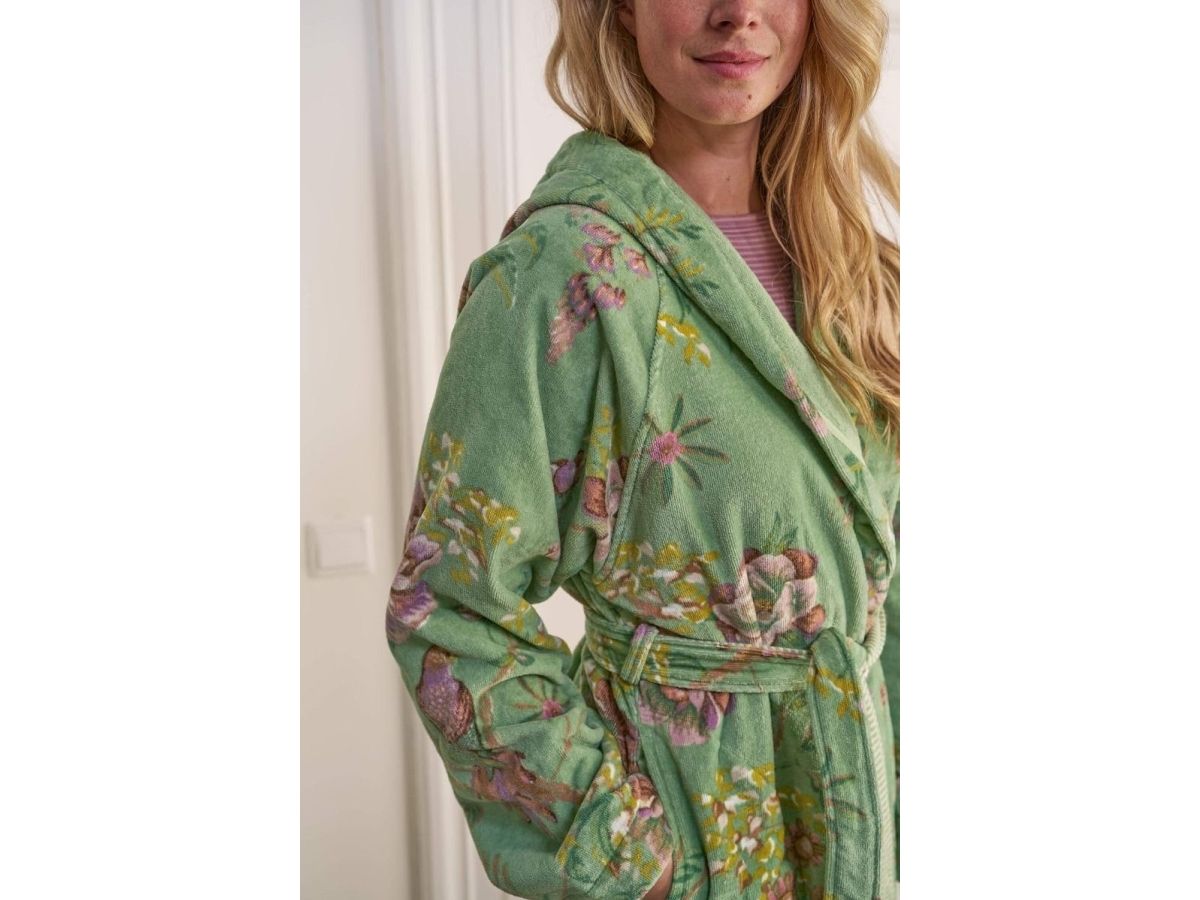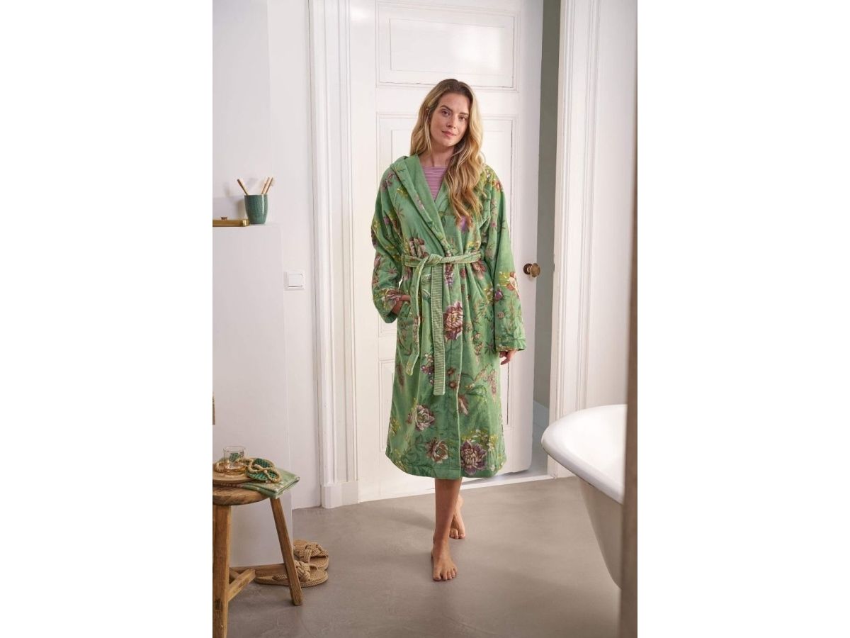Denne skønne PIP Secret Garden Badekåbe Green S fra Pip Studio er lavet af 100% bomulds frotte og har en fantastisk velour-overflade. Den er grøn i farven og passer perfekt til en lækker og afslappende karbade-tur. Badekåben har en størrelse S og kan vaskes ved 30°C.