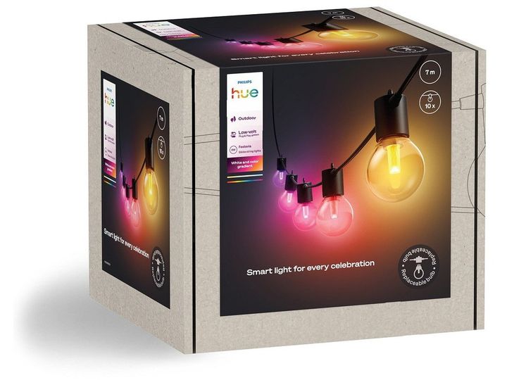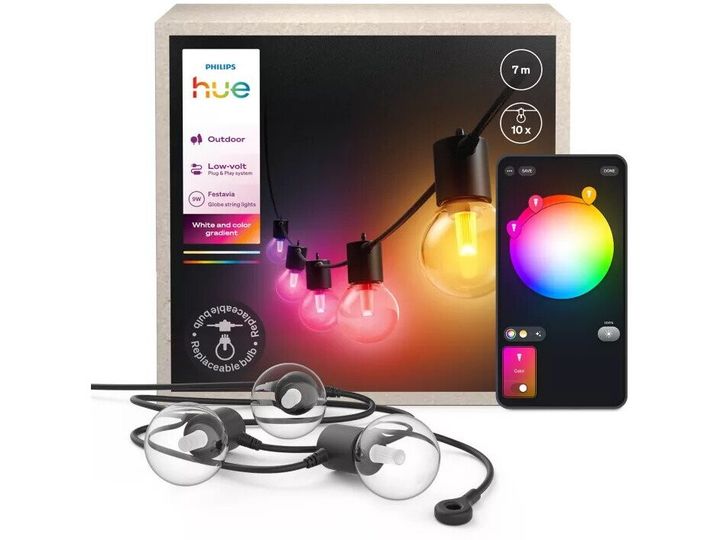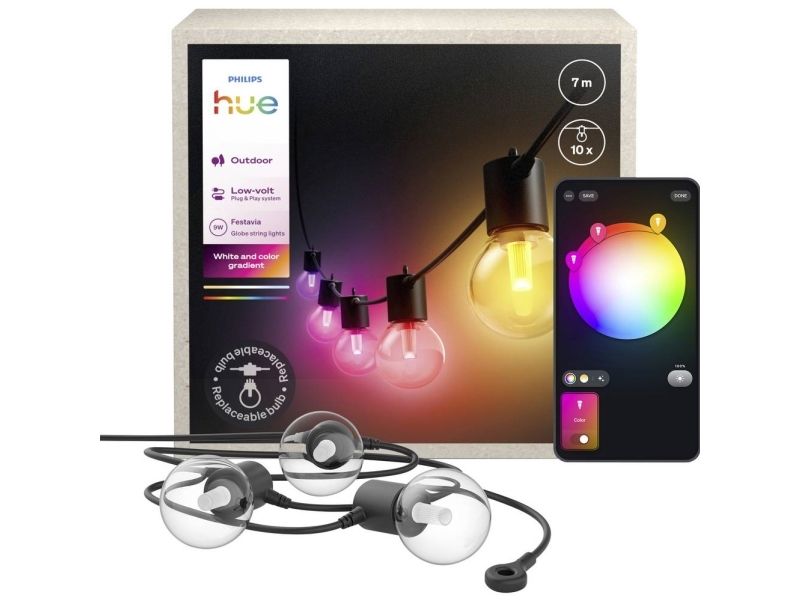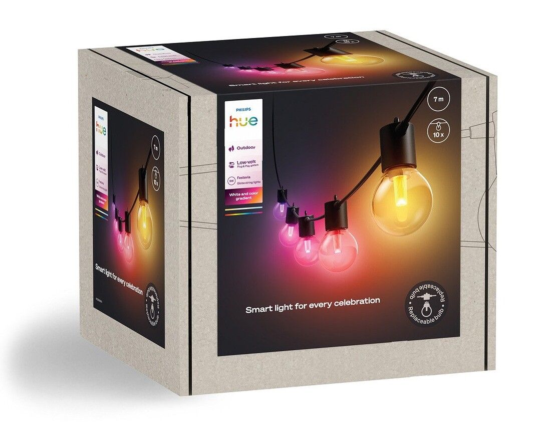 Philips Hue White and Colour Gradient Festavia utendørs lysslynge med globepærer – 7 m