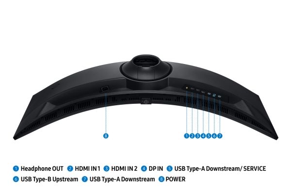 DisplayPort 1.4 (HDCP 2.2) 2 x HDMI (HDCP 2.2) Hodetelefonkontakt (mini-jack) Oppstrøms USB 3.2 Gen 1 (Type B) 2 x nedstrøms USB 3.2 Gen 1 (Type A)