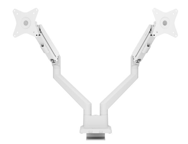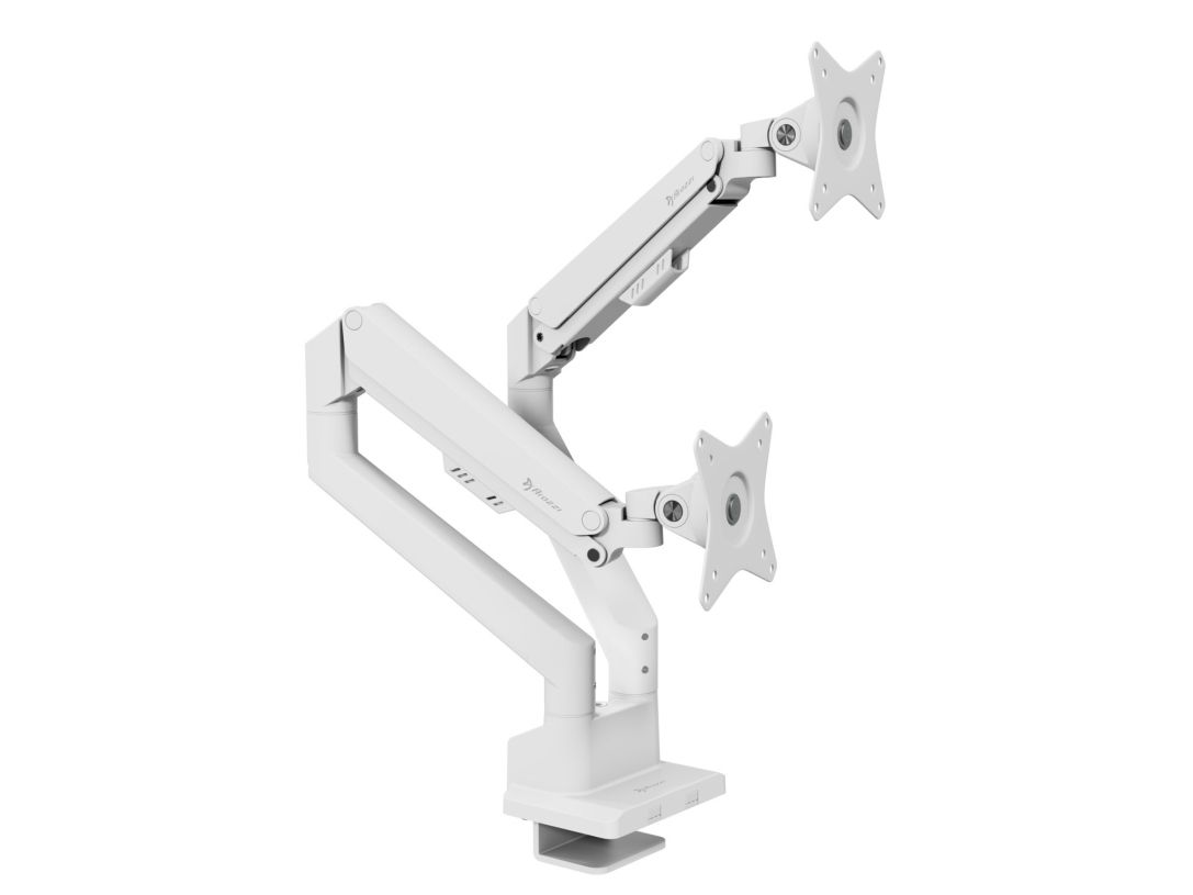 The Arozzi Alzare Neo Duo monitor arm is designed to support two monitors side by side. It fits seamlessly with any desk setup, especially our Arena Desk series. The cable management cut-outs in the Arena desktop make it easy to mount both arms and keep cables neatly organized. This fully adjustable dual arm is simple to install and ideal for boosting productivity in both professional environments and home offices.Arozzi AZ-ALZARE-NEO-DUO-WT. Maximum weight capacity: 18 kg, Minimum screen size: 43.2 cm (17"), Maximum screen size: 81.3 cm (32"), Minimum VESA mount: 75 x 75 mm, Maximum VESA mount: 100 x 100 mm. Height adjustment, Swivel angle range: 90 - 90°, Tilt angle range: 45 - -45°. Product colour: White