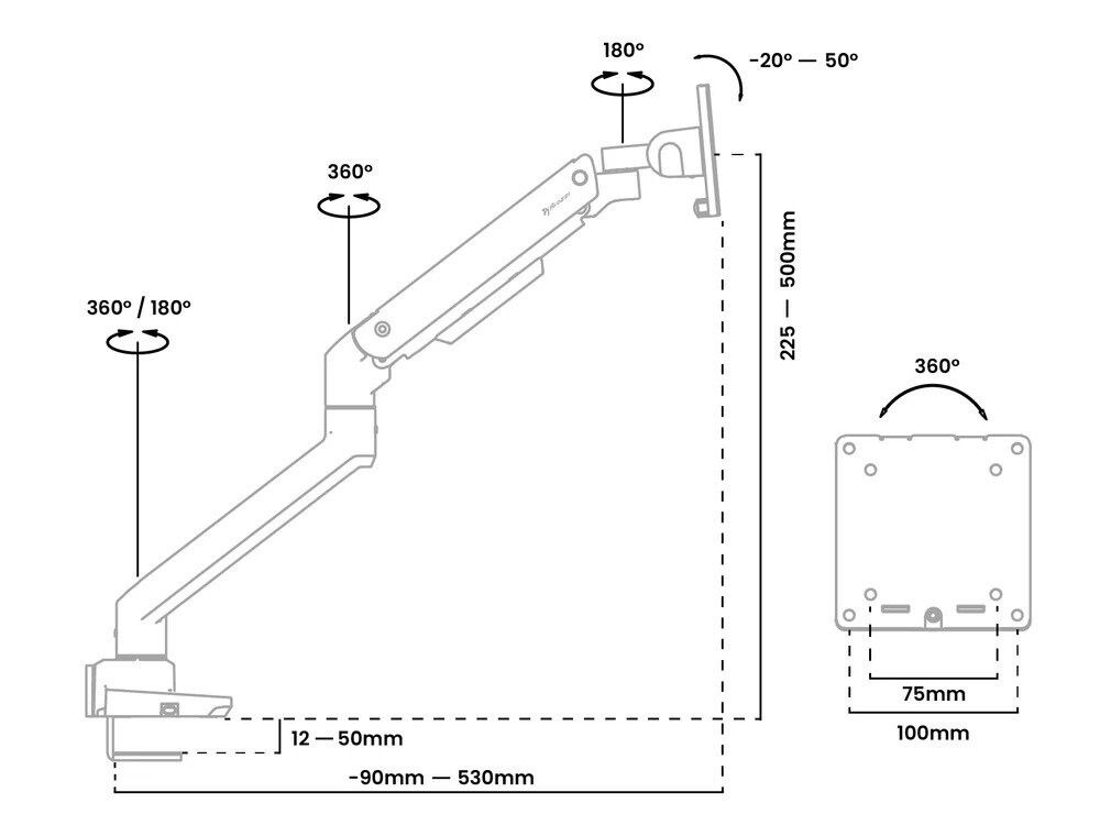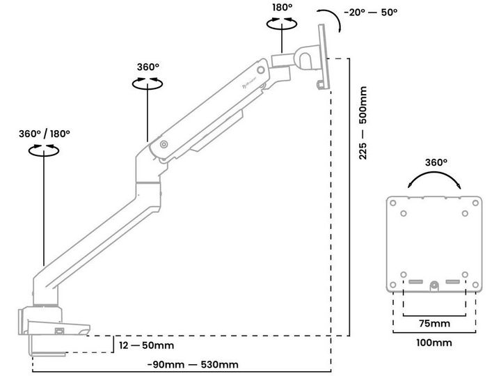 Rotation: 360° or 180° Arm rotation stop