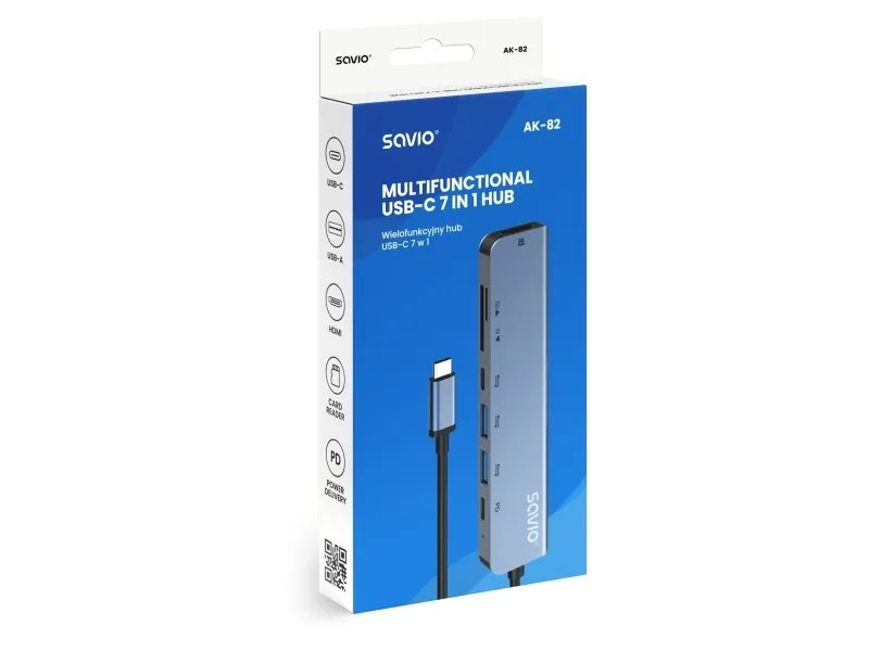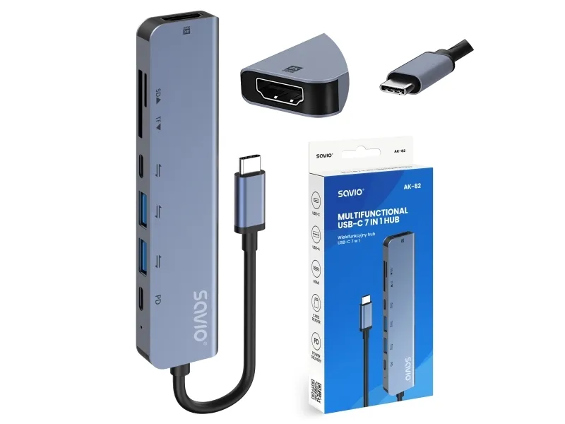 USB-C Hub 7-in-1 Savio AK-82 is a modern and versatile tool that transforms a single port on your laptop or tablet into a fully functional command center.