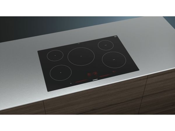 [OUTLET] - Siemens iQ100 EH801LVC1E - Induksjonskomfyrtopp - 5 plater - Nisje - bredde: 78 cm - dybde: 50 cm - svart