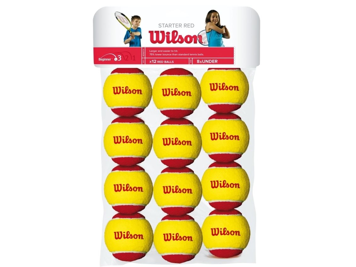 Large low compression felt tennis ball for 10 and under tennis. Designed for 36' courts, driveways and playgroundsWilson Starter Red. Product main colour: Red, Yellow, Material: Rubber, Quantity per pack: 12 pc(s)