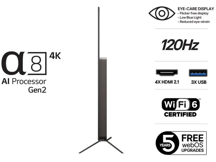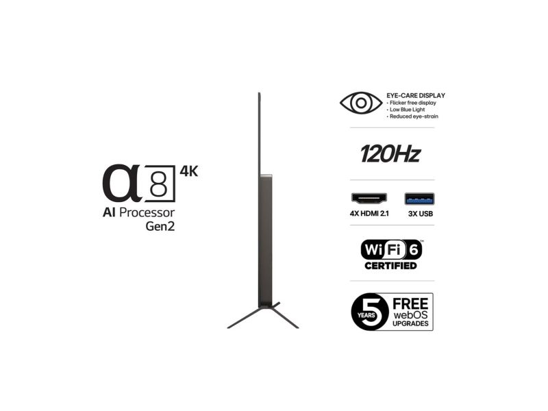 Autokalibrering, 100% Color Volume, Game Optimizer, AI Image Pro, Brightness Booster, Dynamic Tone Mapping Pro, 100 % Color Fidelity, OLED Color, a8 AI Super Upscaling 4K