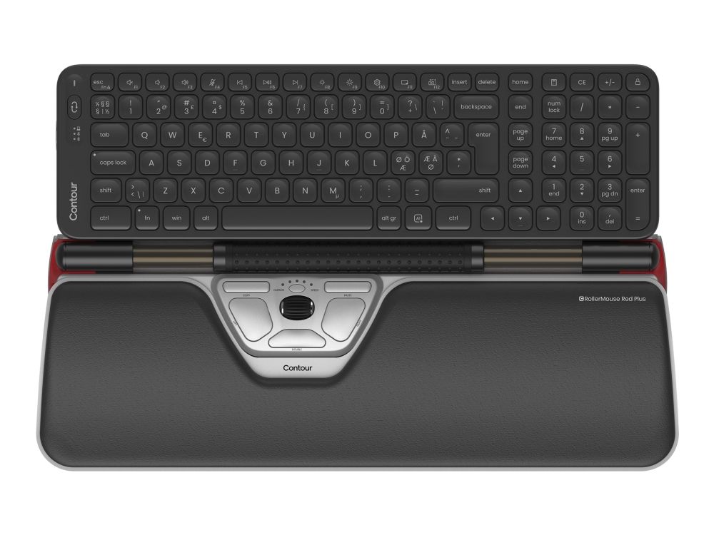 Contour RollerMouse - Tastatur- og mussett - midtstørrelse - trådløs - Bluetooth 5.1 - QWERTY - Pan Nordic