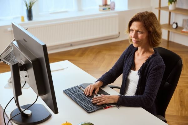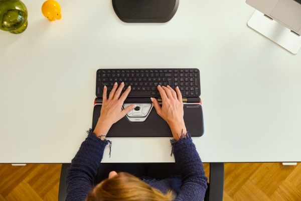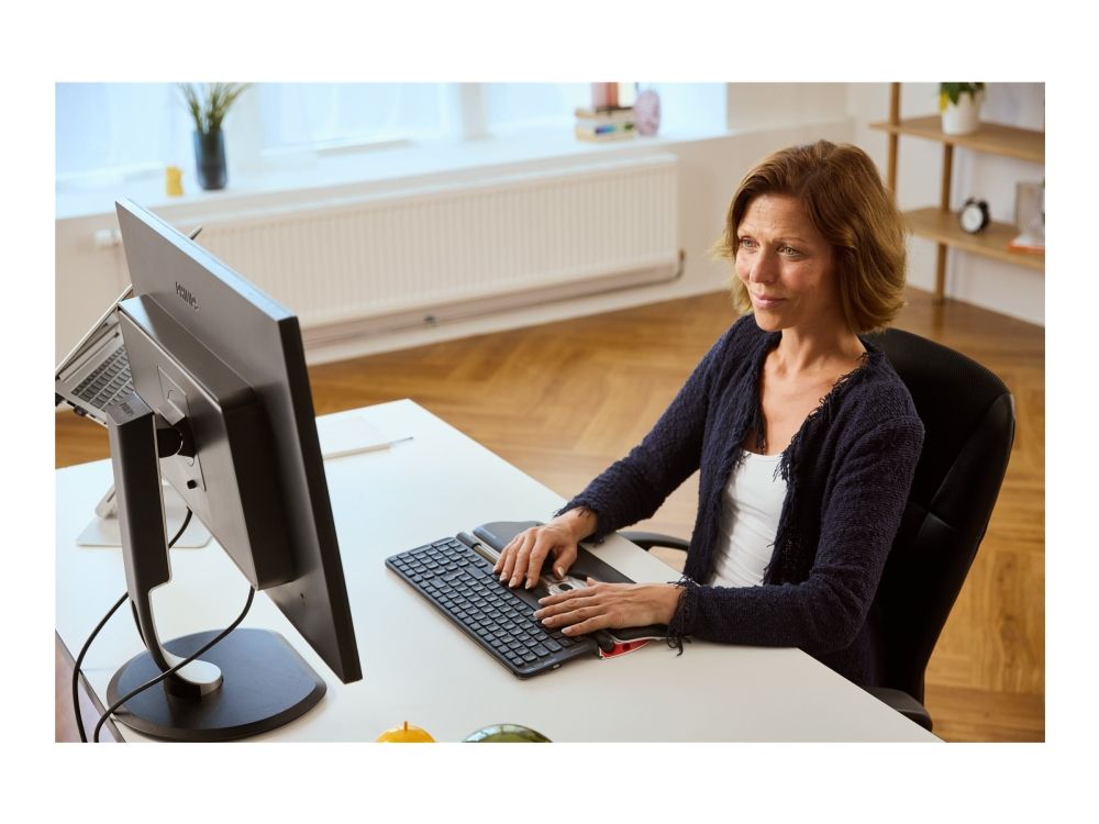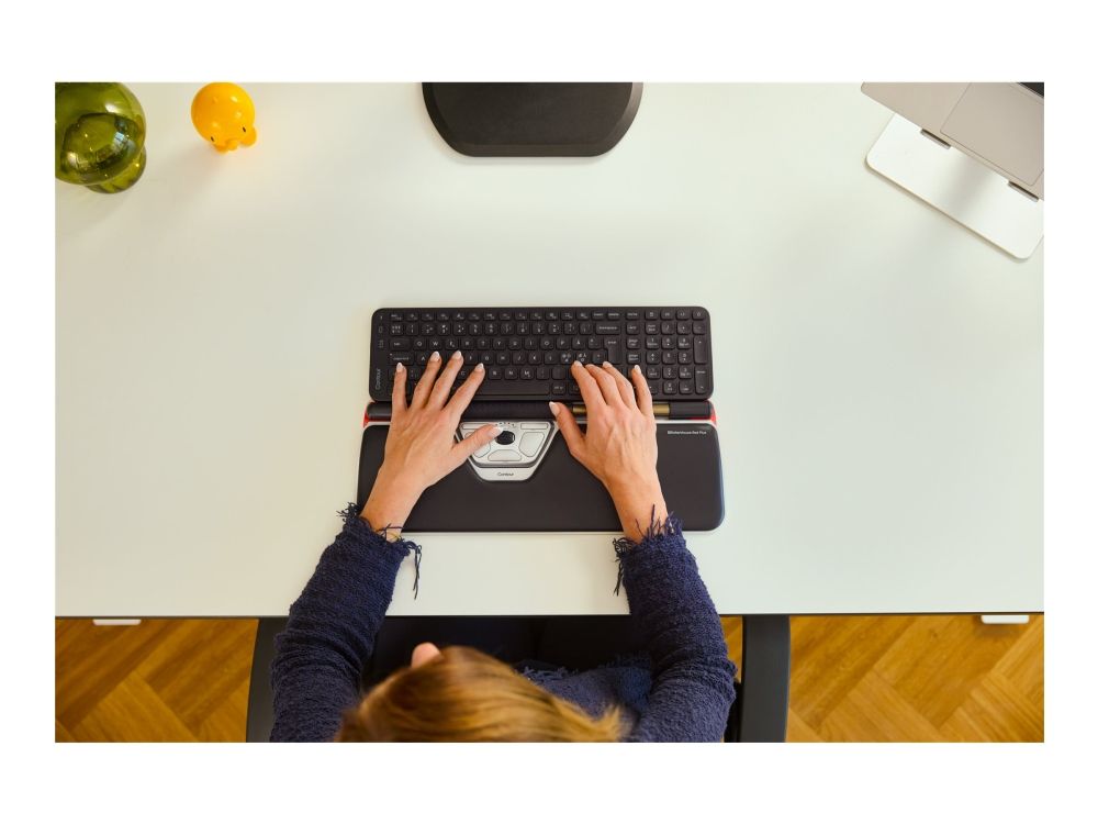The RollerMouse Red plus offers movement detection with a resolution of 2800 DPI, making it ideal for precise navigation. With an adjustable height feature, the keyboard adapts to individual comfort preferences, further supporting an ergonomic workspace. Each component is designed with sustainability in mind, featuring recyclable materials and compliance with environmental standards.