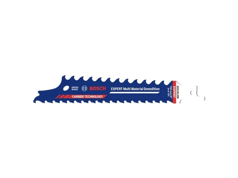 EXPERT multi materiale demolition S681KLHM blad, 10-dele Langtidsholdbar skæring af lamineret træ og træ med metal! Aggressive 3-TPI-carbider-tænder på oversiden af arket til baksnit til brandvæsen, redningstjenester, politi og medicinske nødtjenester er det afgørende at komme hurtigt ind i spærrede områder. En af dens vigtigste redningsværktøjer er sabelsave - de har dog brug for ekstraordinære savklinger, som pålideligt kan skære i komposittræ, vinduer og træ gennem med hærdede søm og skruer. EXPERT Multi materiel Demolition S681KLHM er udviklet til denne afgørende opgave. Bosch EXPERT Bosch Multi materiel Demolition S681KLHM er baseret på Bosch Bosch Carbide-teknologi. Den skærer hurtigt og pålideligt gennem hårde materialer som komposittræ og træ med hærdede metalfastgørelser. Fremragende levetid takket være Bosch Carbide Technology