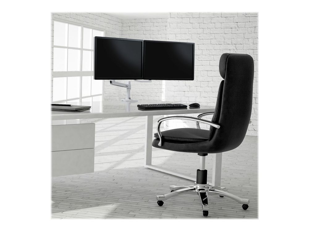 Create a fully adjustable side-by-side monitor configuration that lifts both LCD screens simultaneously to where they're easier to see while reclaiming valuable desktop space. Reposition your LCDs with just a touch. Up. Down. Forward. Back. The low-profile crossbow allows monitors to move simultaneously with ease. Monitors pivot up and down independently providing a compact range of motion and optimal monitor alignment.